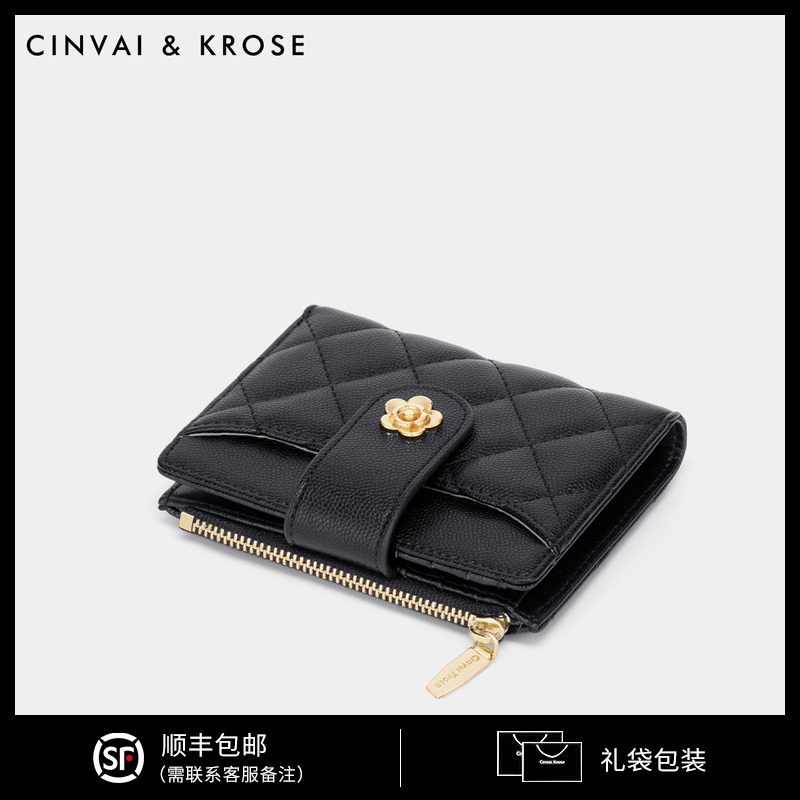 Official website Small ck Flagship Store Wallet woman Short Genuine Leather Zero Wallet minimalist Multi-position Delicate Card Wallet for Women Money clip-Taobao