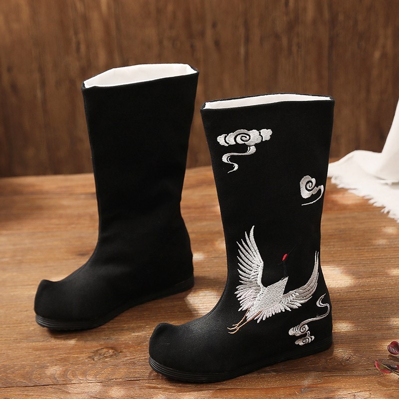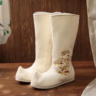 Hanfu Boots Children Ancient Style Manhood Antique Dress Men's Shoes Embroidered in Heightened Soap Boots Chinese Long Drum Boots Winter-Taobao