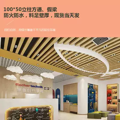 Ecological wood square pass column square tube false beam ceiling ceiling green can wood 100*50 square wood entrance partition screen