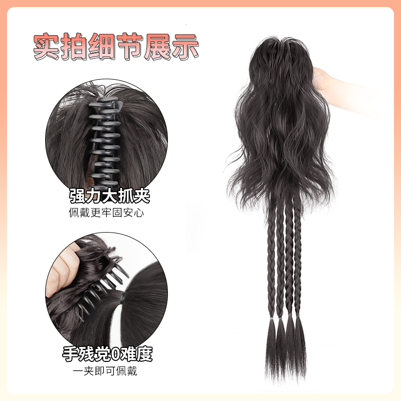 Fake Hair Braid Child Horsetail Long Hair Emulation Hair Grip Clip Waterfall Semi-zal High Horse Tail y2k Twist Boxing Braid Wig-Taobao