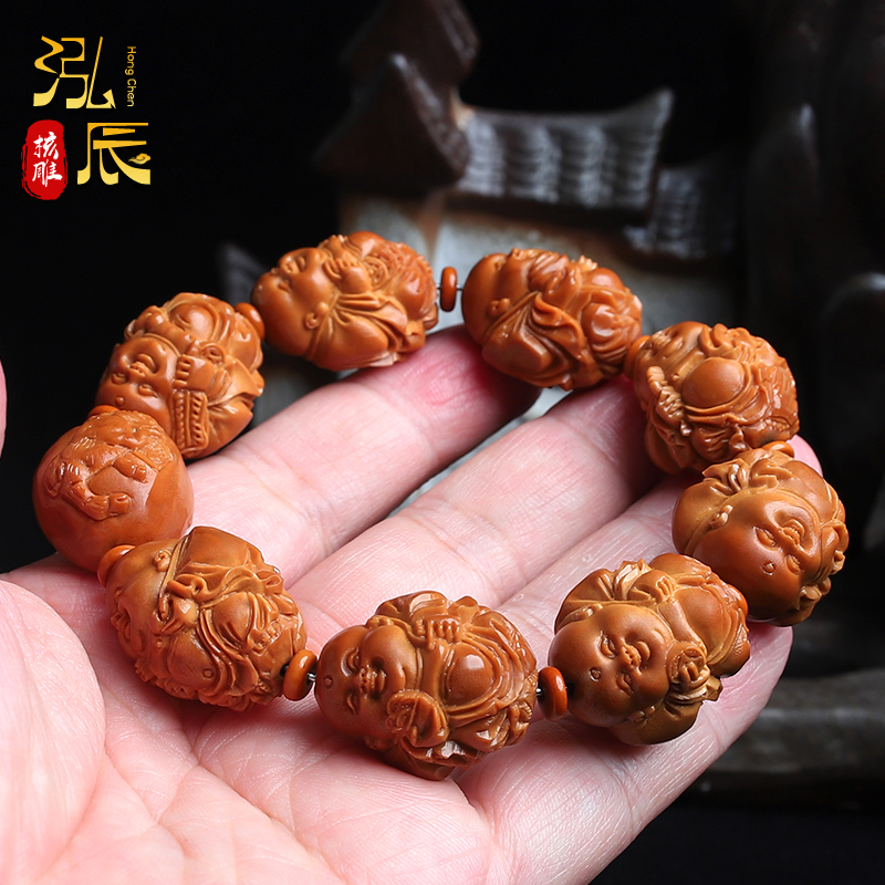 Olive nuclear hand string Eight major Millover boutique Old Oil Nuclear text Play in pure handmade Eight Treasure Boy Eight Treasure Hand chain-Taobao