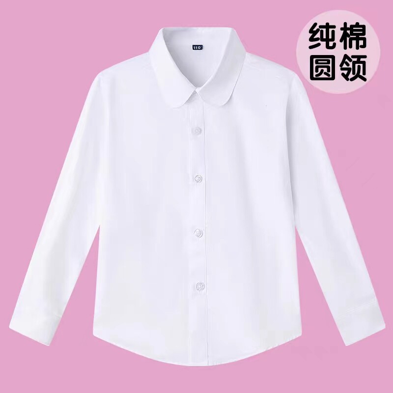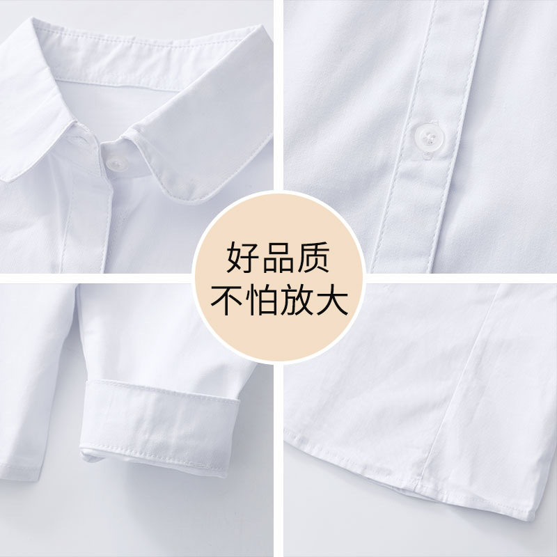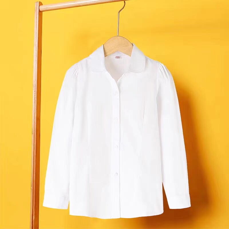 Girl White Shirt Long Sleeve Children Pure Cotton Spring Autumn Primary School Students School Uniforms CUHK Child White Shirt Performance Out-Taobao