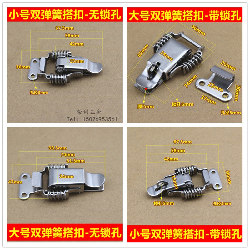 304 stainless steel double spring with lock buckle wooden box padlock buckle box buckle chassis buckle luggage accessories