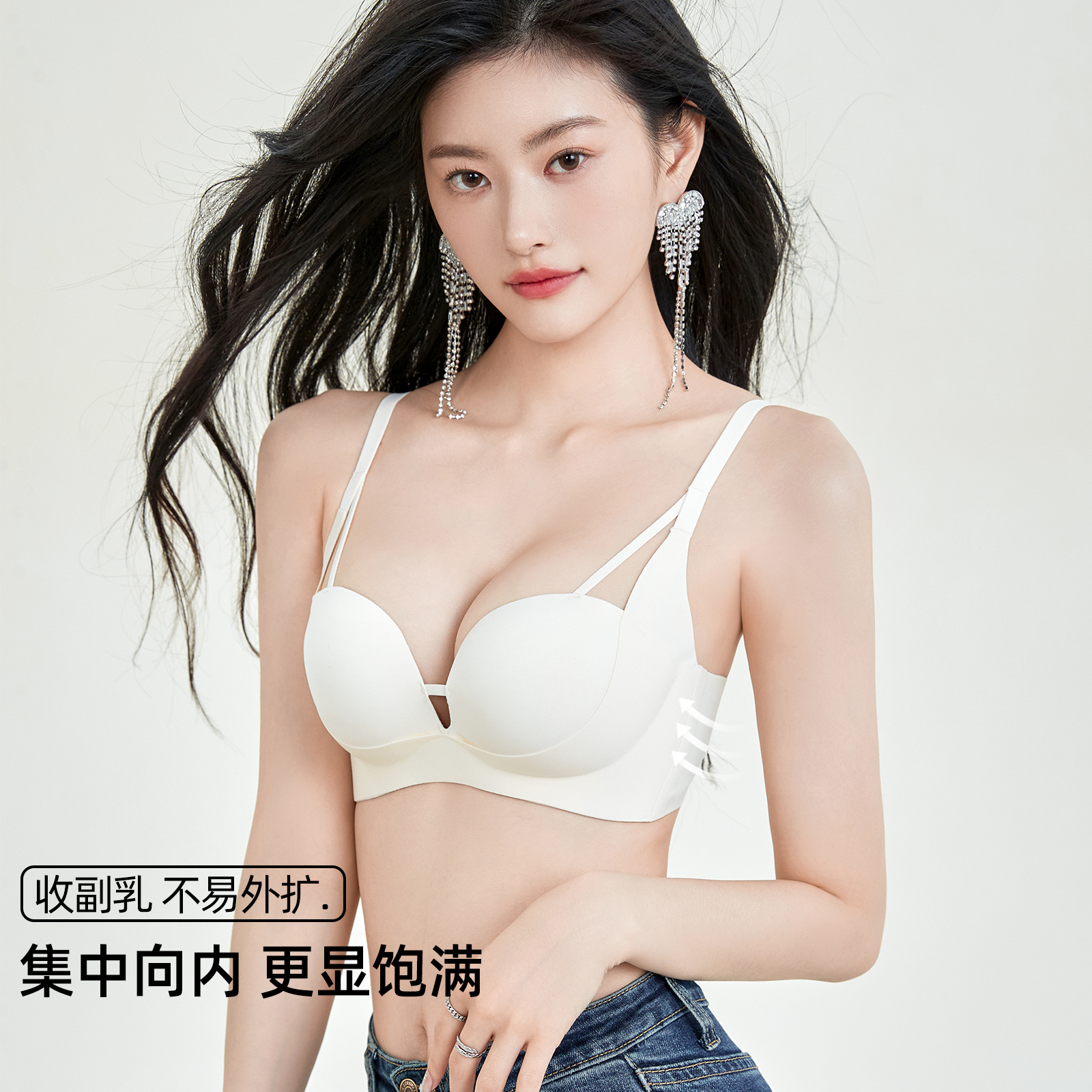 Six bunnies without scar underwear female small breasts gathered with large wave chest concentrated full collection of auxiliary milk without steel ring bra-Taobao