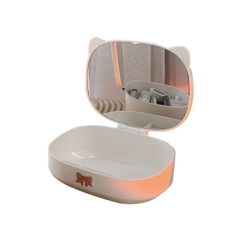 Put the mirror on the table high-value small mirror makeup mirror with light storage storage box integrated dressing mirror folding