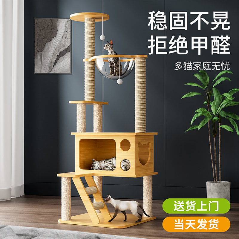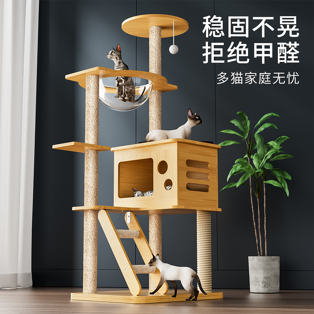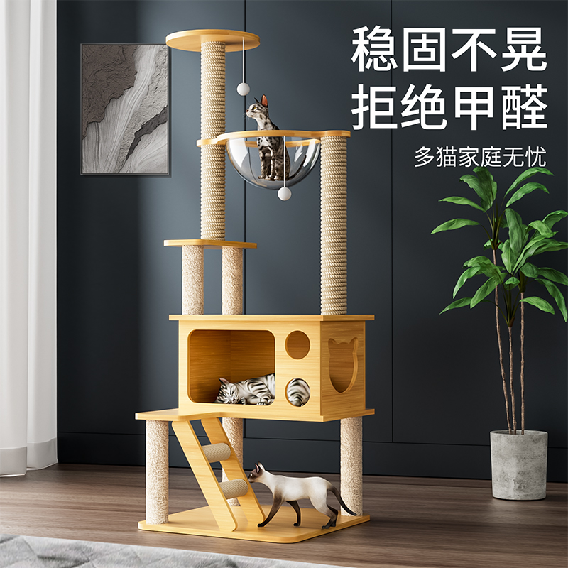 Cat climbing cat and cat tree One body Space capsule through Heaven Pillar Cat Jumping Bench Cactus Cat Cat Grabbing Cat Villa Cat Toy-Taobao