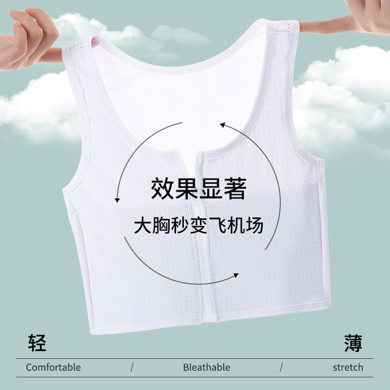 Cat Human Bunch Chest Underwear Women Les Super Flat No Marks Big Chest chests Little Slim Chest Zipper Shockproof Vest Summer Thin-Taobao
