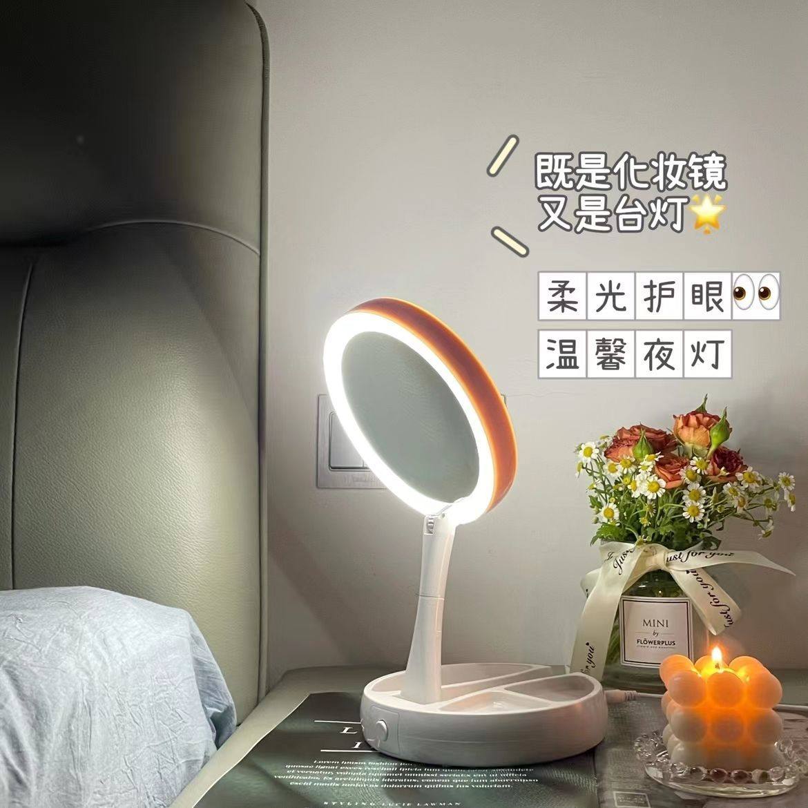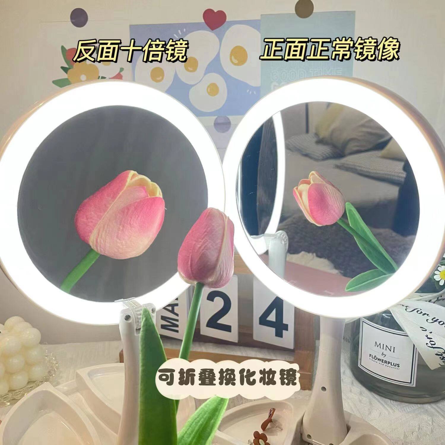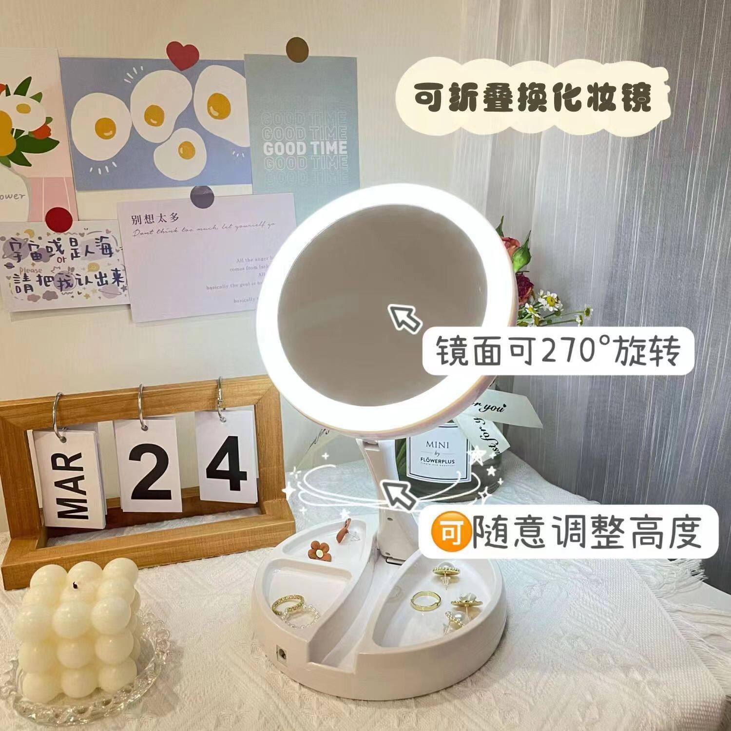 Makeup folding mirror led light makeup mirror portable double-sided magnifying supplementary light mirror charging desktop desktop household mirror