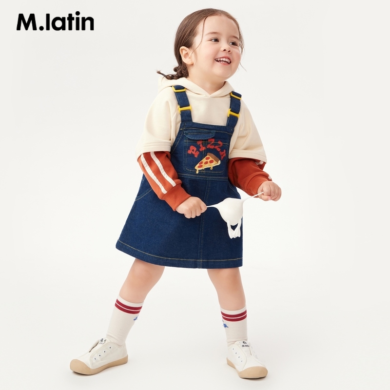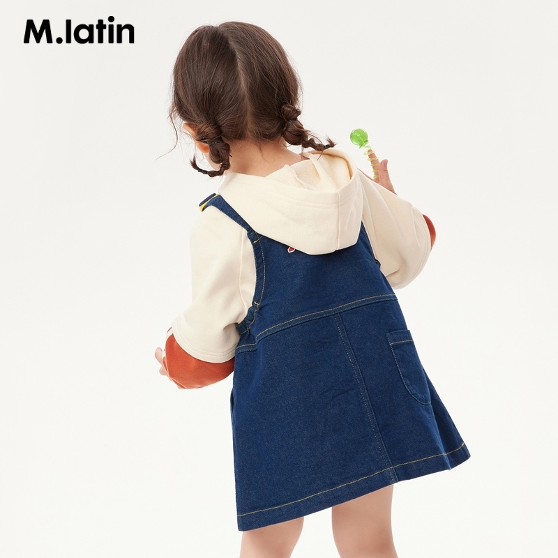 Malading children dress children with dress 2023 autumn new girl children's baby retro printed denim harness skirt-Taobao
