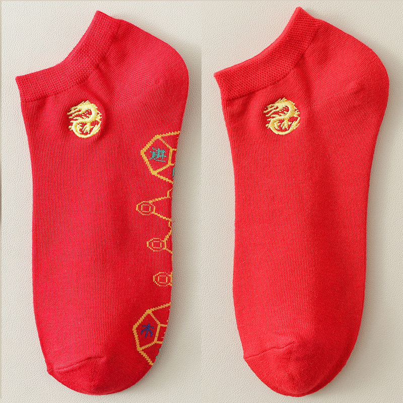 Dragon Year Seven Starsocks Sox Sox short socks This year Men's women Sox Silo Pure Cotton Red Socks Feet on Seven Stars Dragon-Taobao