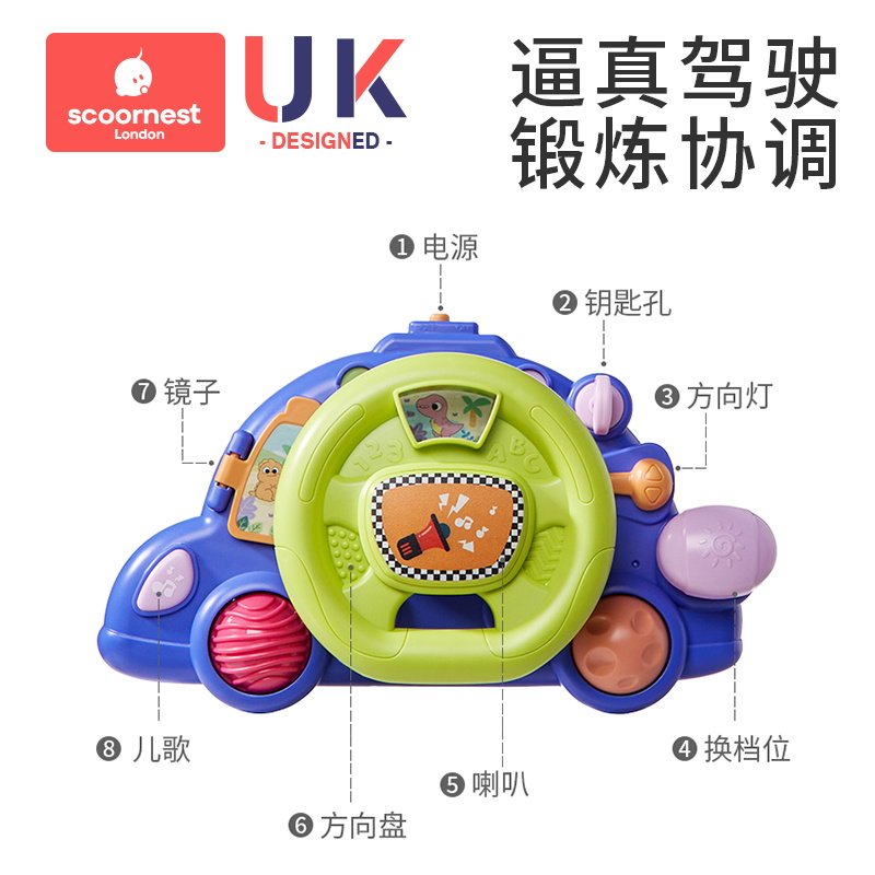 Children's steering wheel cartoon mock co-pilot early teaching toy baby imitation car stroller cart cart dova theva-Taobao