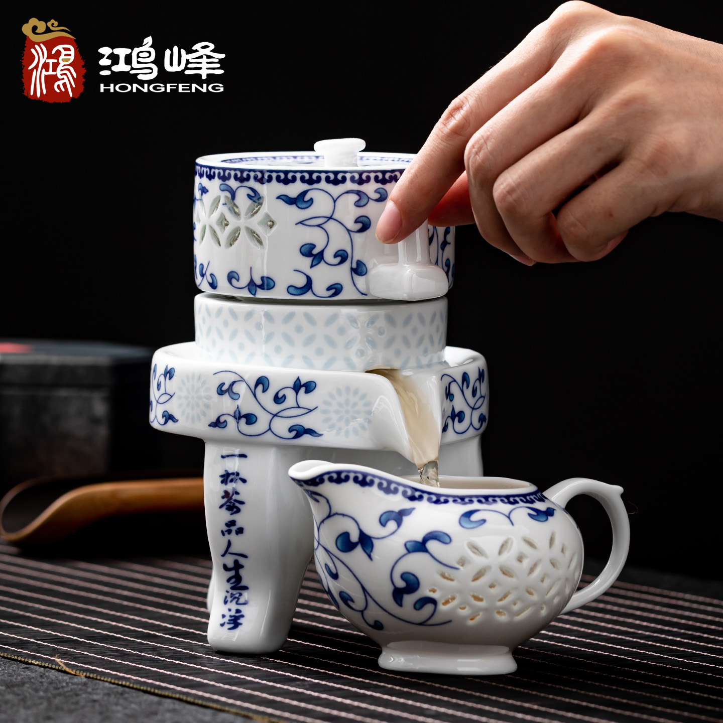 Ceramic Kung Fu Tea Suit Home Stone Grinding Creative Half Fully Automatic Sloth Man Anti Burn Brewing Tea Instrumental Teapot Tea Cup-Taobao