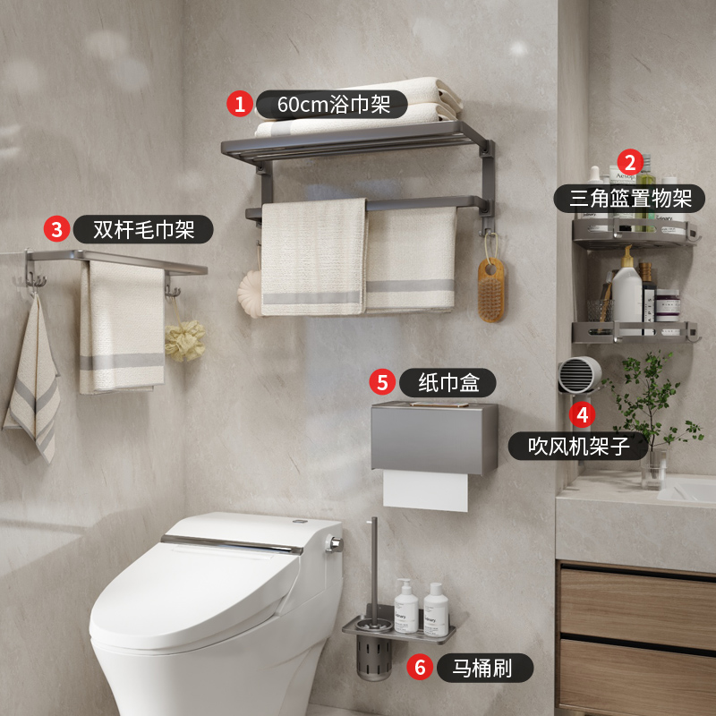 Toilet Space Aluminum Gun Grey Towel Rack Shell-free Bathroom Hung Towel Bar Containing Bath Towels 1791-Taobao