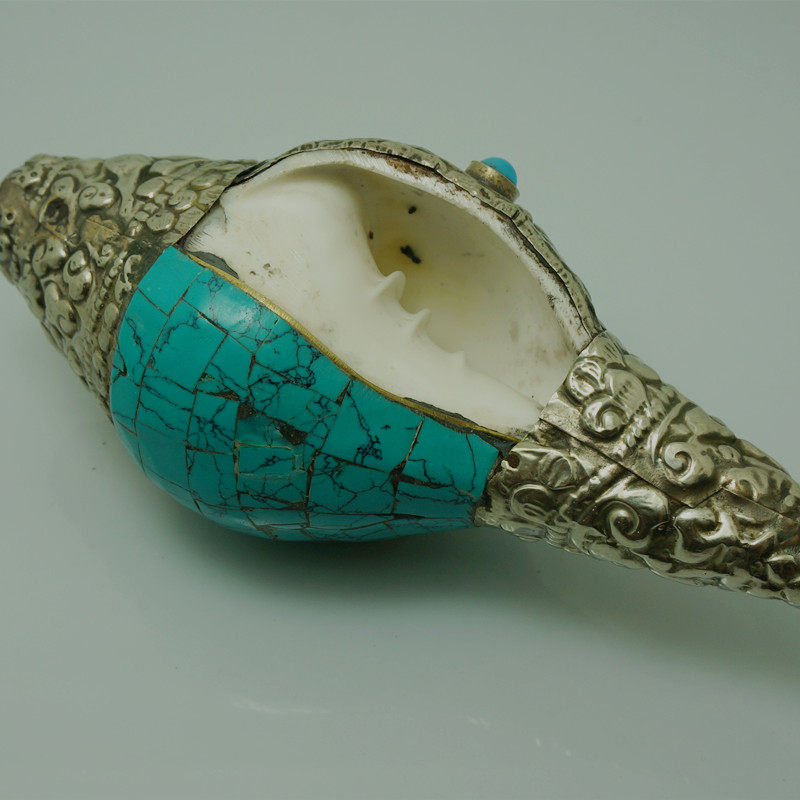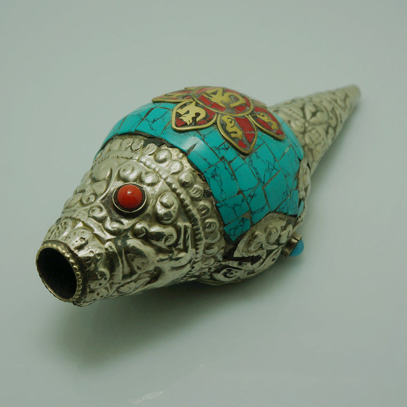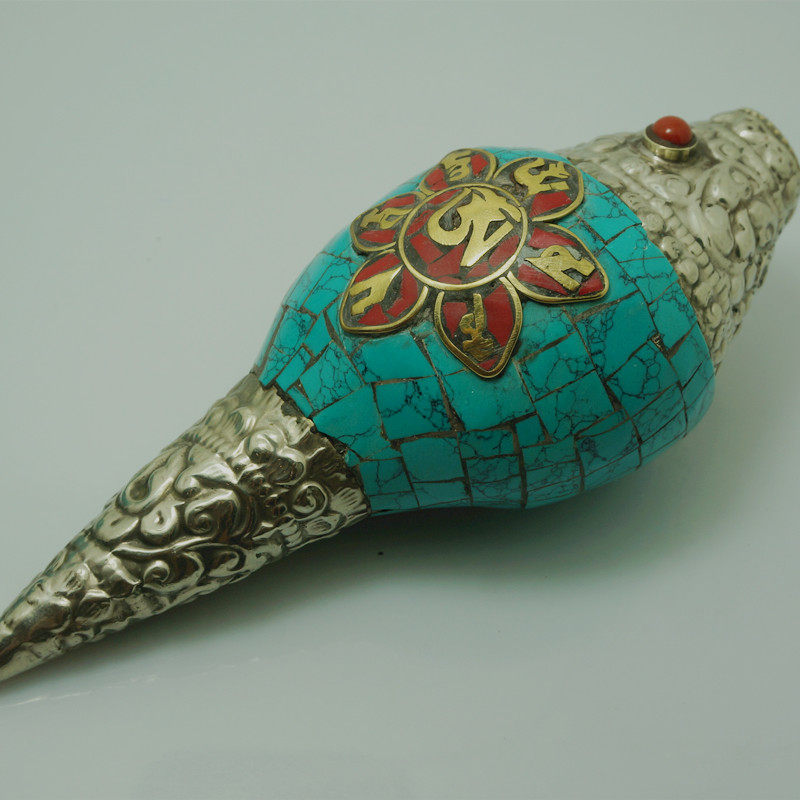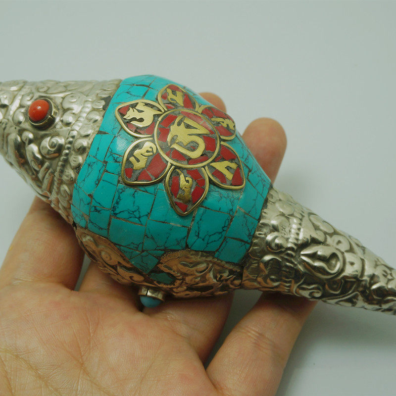 Tibetan Myitong Supplies Six Words True to the Colorful Stones Sea Snail Nepal Handmade White Bronze Sculpture Flower Wrap Method Snail Repo for furniture-Taobao