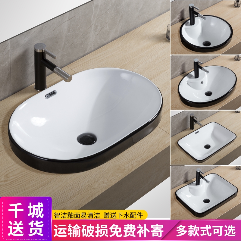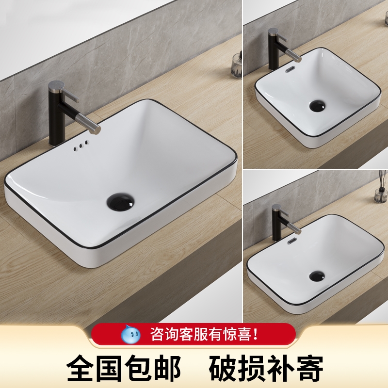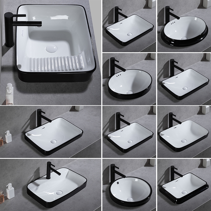Black Nordic home semi-embedded Taichung basin square washbasin ceramic bathroom washbasin balcony
