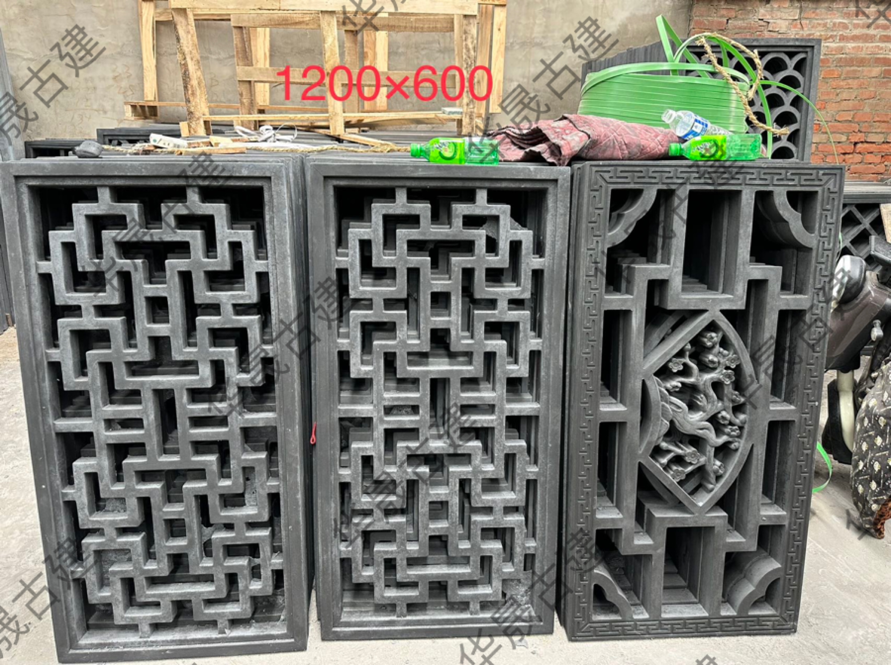 Chinese style ancient built courtyard through window imitation ancient hollowed-out brick carved wall flower window flower lattice window cement fan round rectangular deco-Taobao