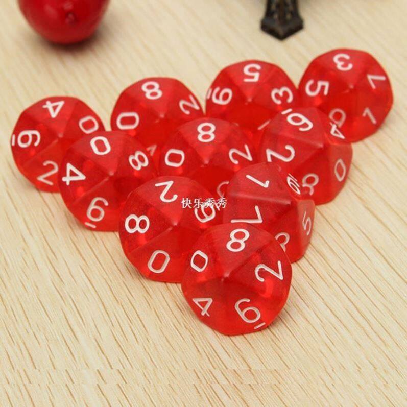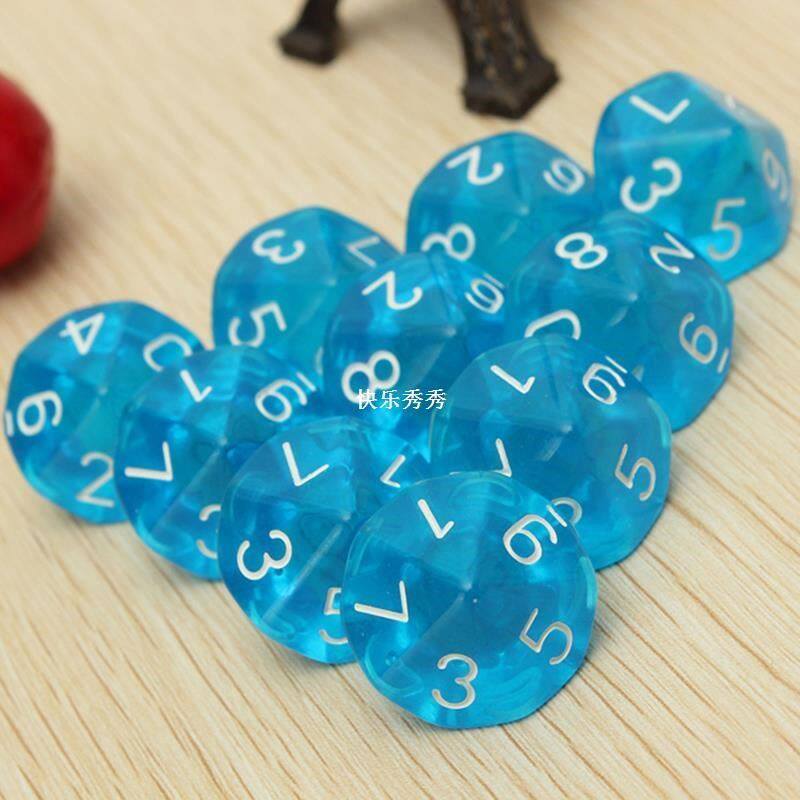 10pcs Transparent 10 Dice Die 10 Sided Gem Dice Set Multicol