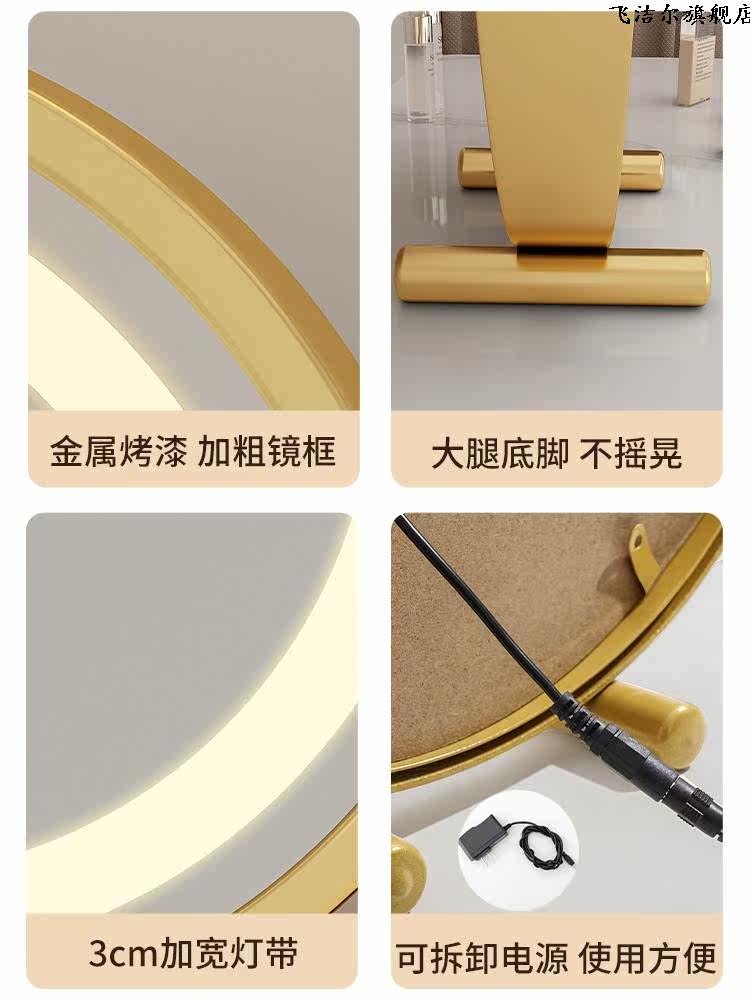 Light luxury brand large desktop makeup mirror led with lights dormitory students ins wind dressing table bedroom net red