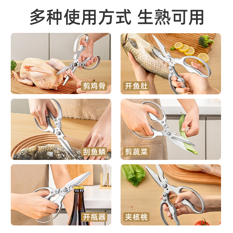 Euloitte Versatile Kitchen Scissors Home Kill Fish Grilled Meat Cut Bones Special Stainless Steel Chicken Duck Meat Food Cut-Taobao