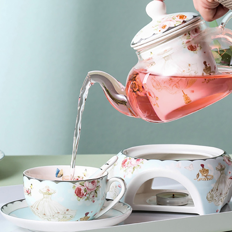 Mantle Light Lavish Afternoon Tea Cutlery Suit Han Style Ceramic Flower Tea Cup Glass Candle Heating Teapot Flower Tea Tea Tea-Taobao