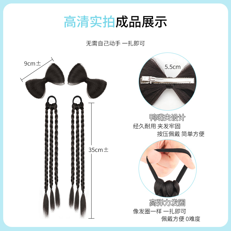 Children's wig braid ponytail Internet celebrity bow boxing braid y2k small braid sweet cool twist braid double ponytail wig
