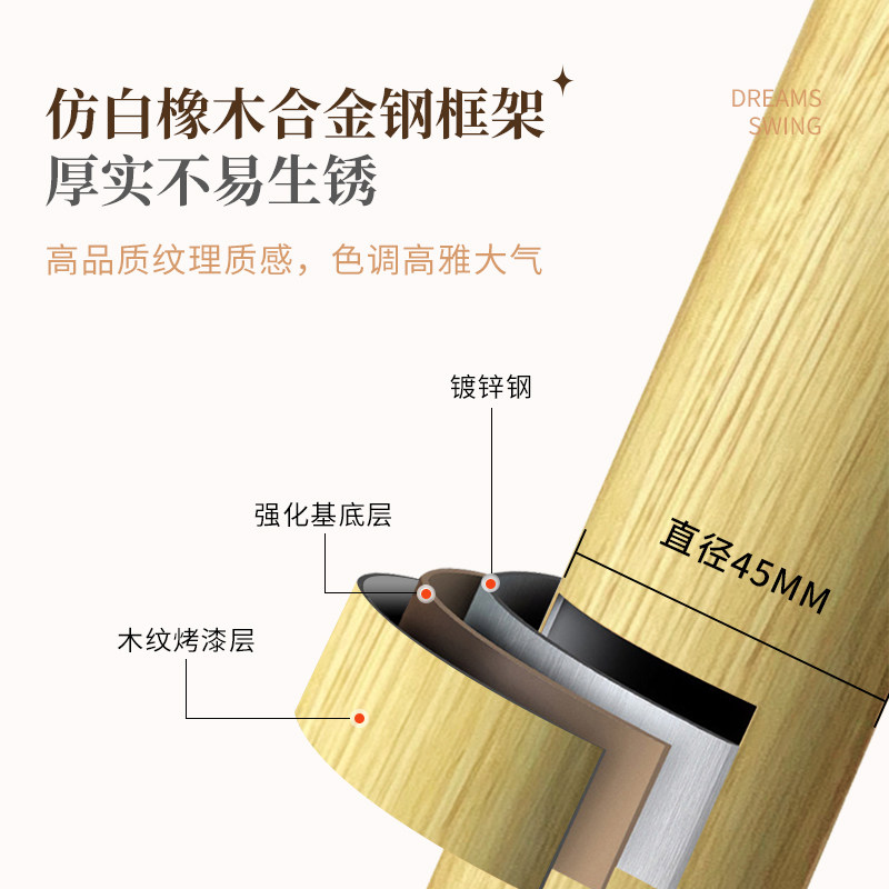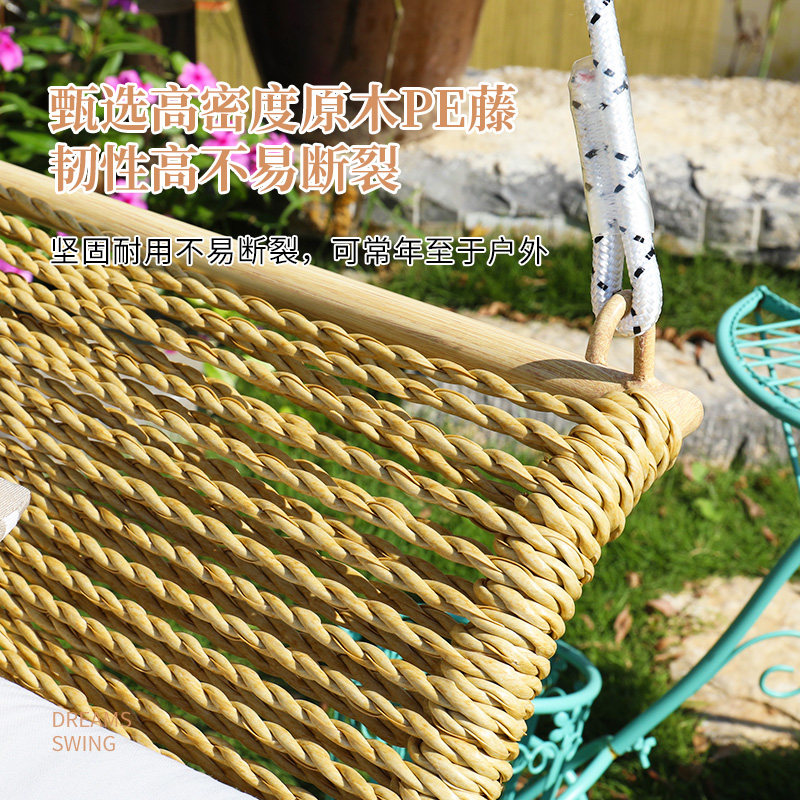 Platycoon double swing (original wood color PE rope imitation wood grain frame) gift with high fixed deposit cushion-seat pillow-able to sit down and shake with a single swing (original wood color PE rope imitation wood grain frame) to give a high set seat