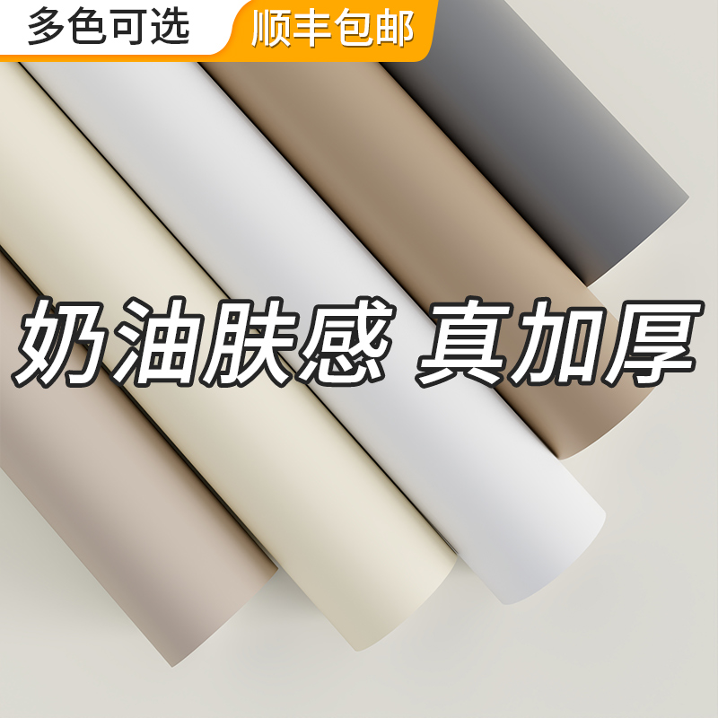 Closet cabinet door cream modified colour film wood grain table top retouching renovation whole posting paper cabinet furniture self-sticking leather-Taobao