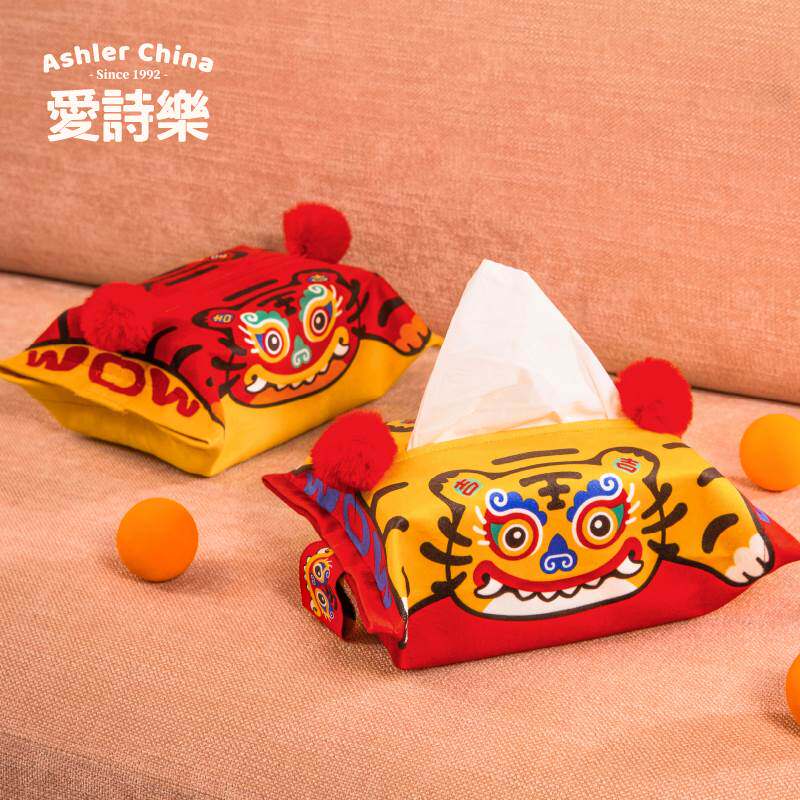 Ai Shi Le Fu Tiger tissue box set car hanging festive cute car with new Chinese style living room fabric pumping paper box