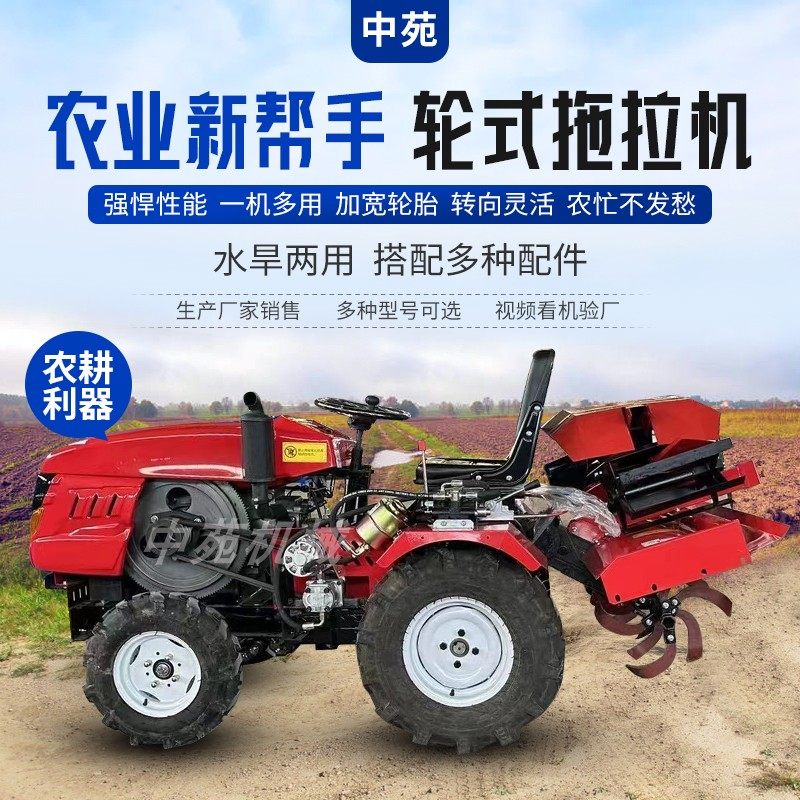 New four-wheel multifunctional four-drive greenhouse tractor agricultural diesel main force digging ditching rotary tilling tractor-Taobao
