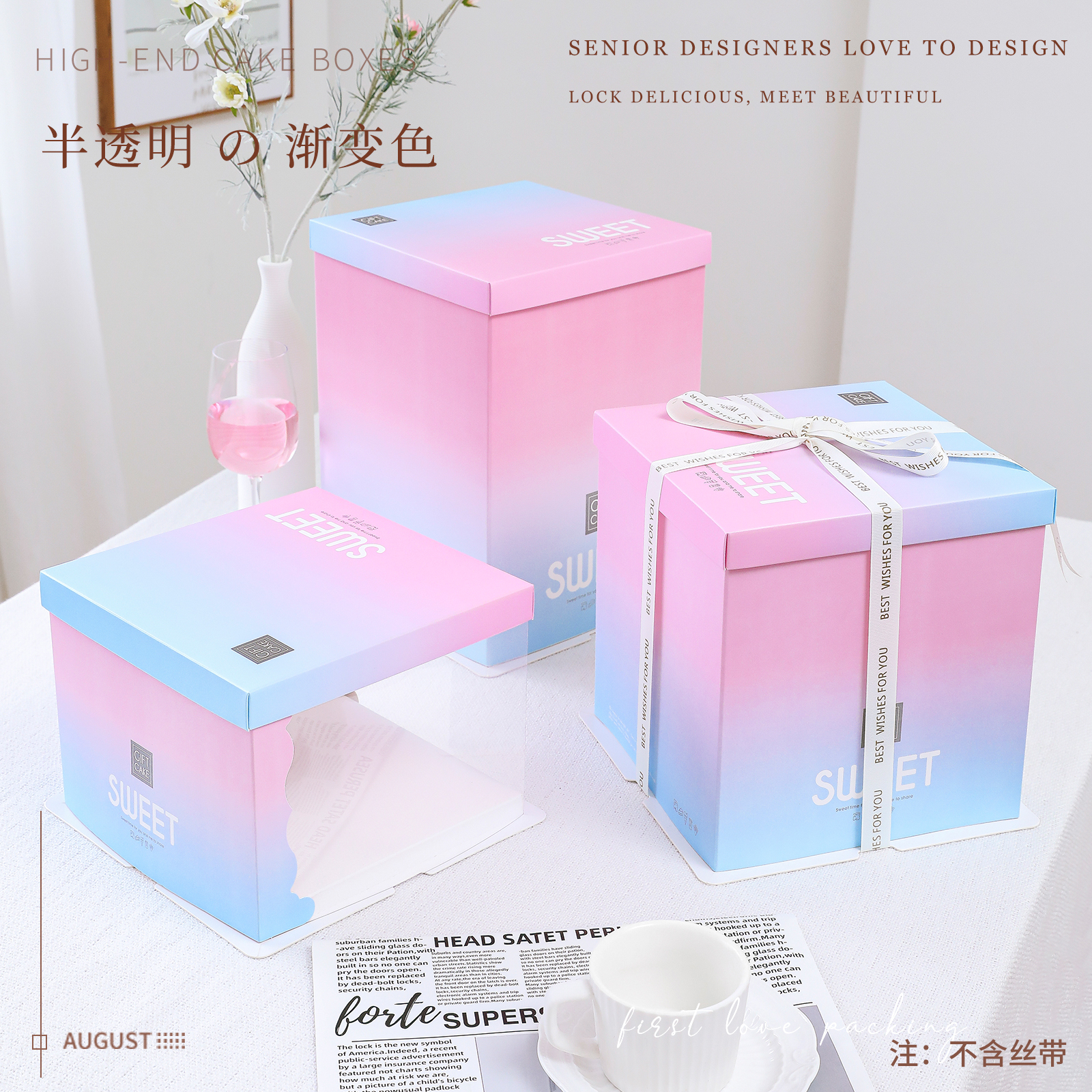 Net red translucent cake box 6 inch 6 inch 6 8 8 100 12 inch double layer plus high transparent birthday packaging box custom-made-Taobao