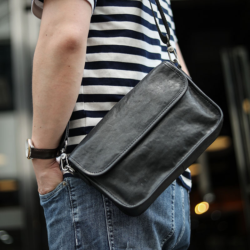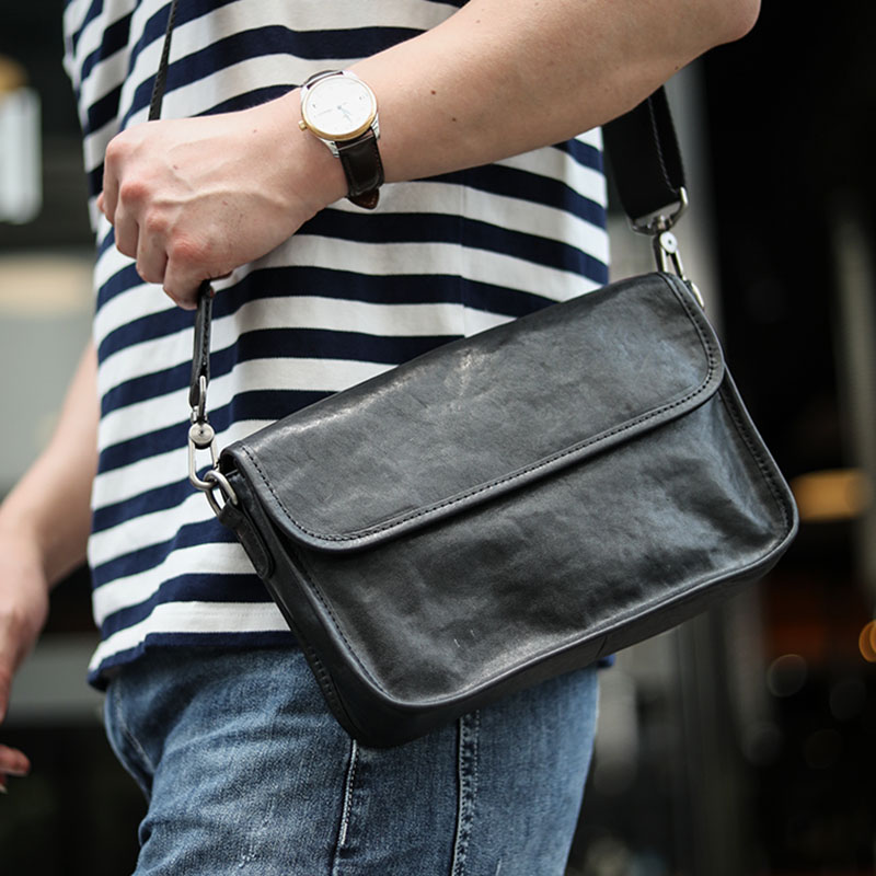 Brief commuter men's genuine leather single shoulder diagonal satchel with tannic cow leather Carry-on Bag Cross square Postbag Chauffling-Taobao