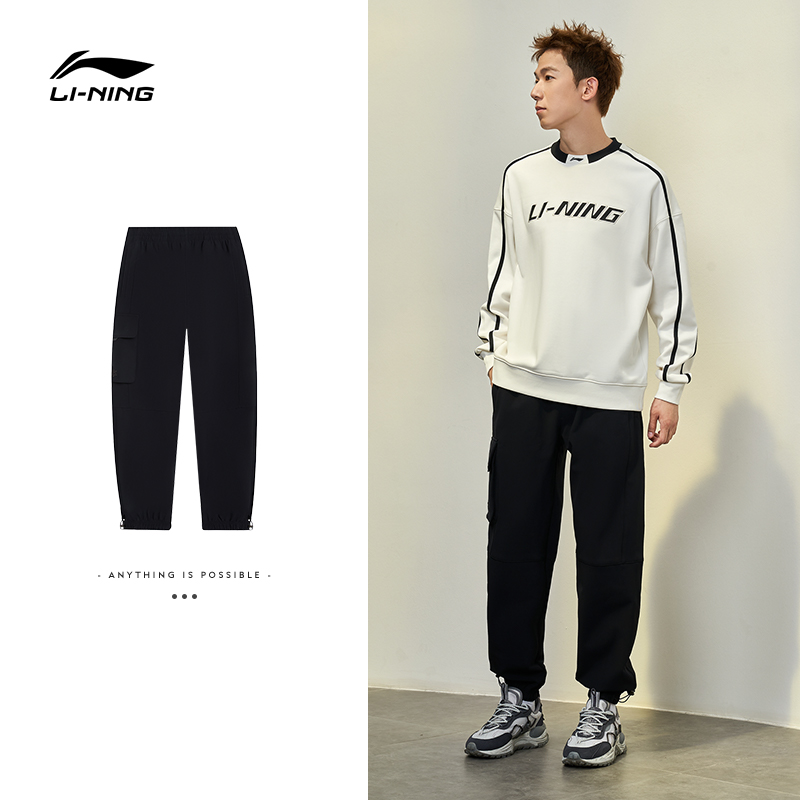 Li Ning Anti Splash Water Sports Pants) Men's 2023 new autumn and winter plus suede men's pants warm bunches sports trousers-Taobao