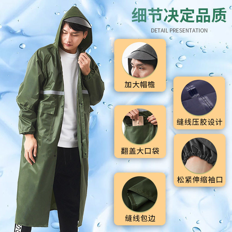 Long-style raincoat conjoined anti-rainstorms increase lengthened thickened raincoat male and female adults hiking outdoor windproof and breathable-Taobao