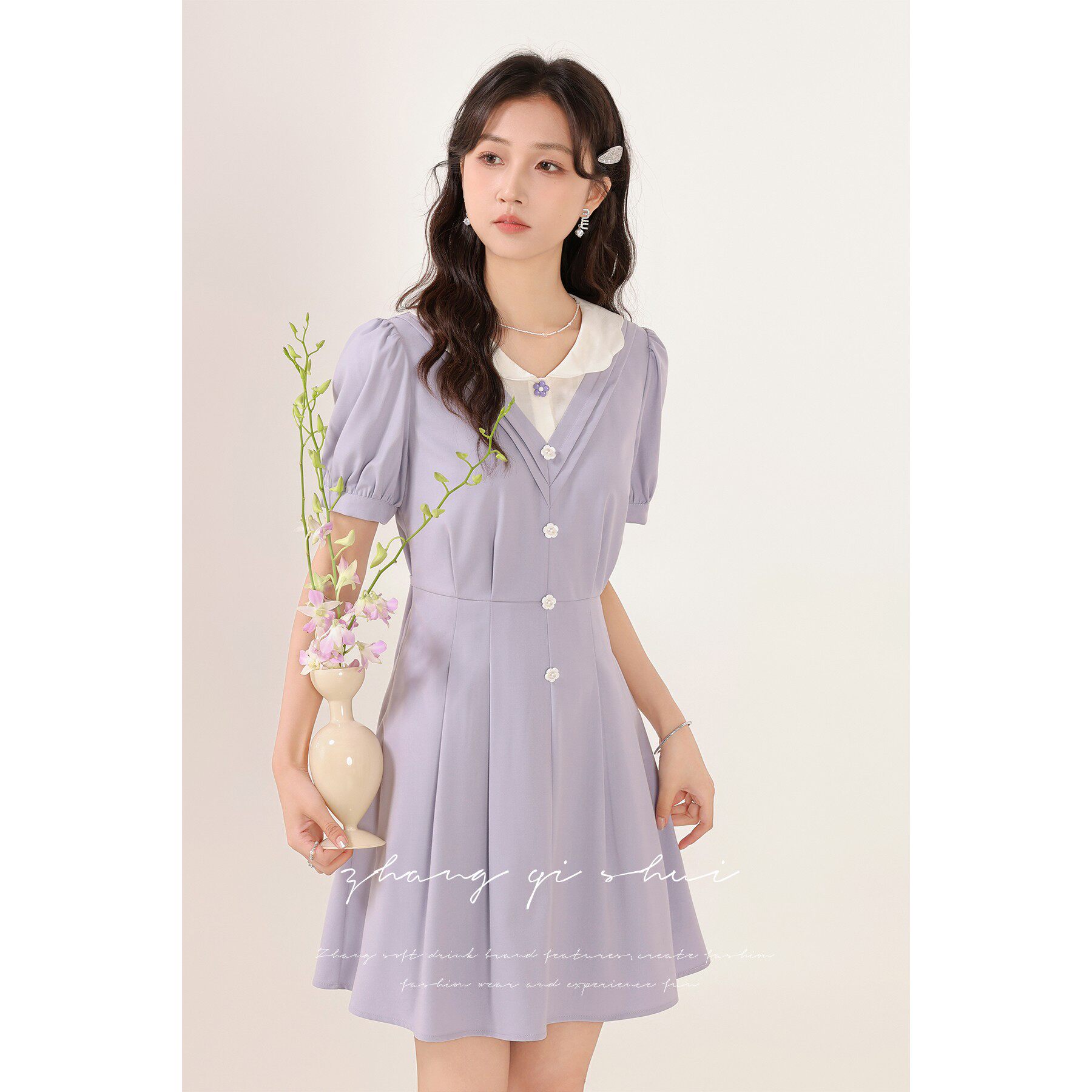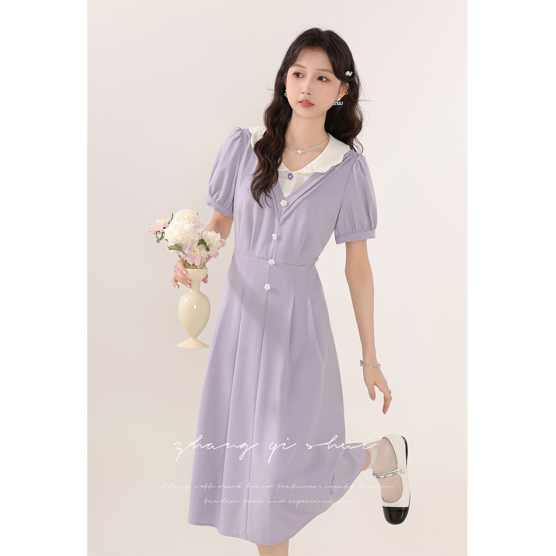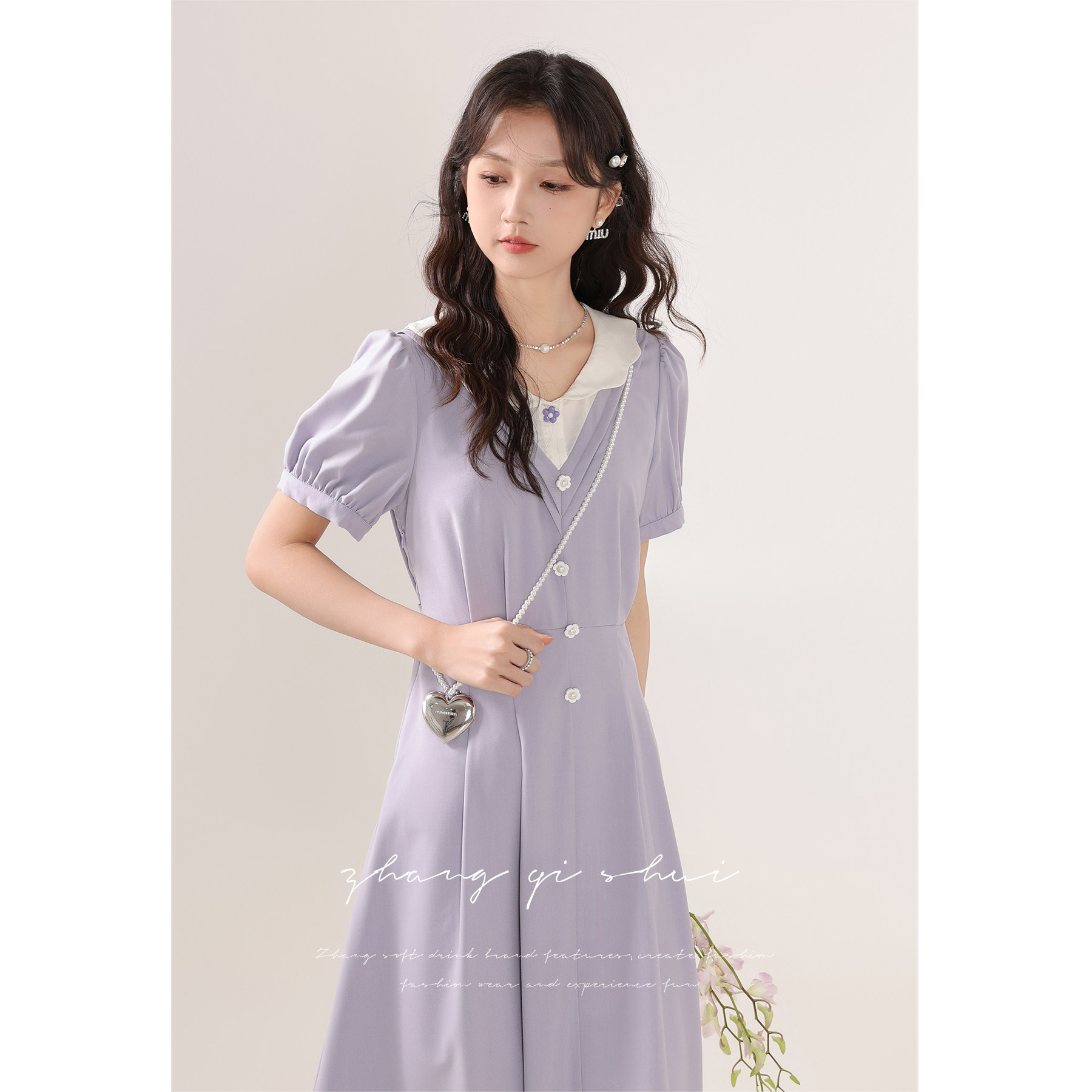 Zhang soda "Taro Milk Jelly Roll" Summer new women's style Purple Temperament Design Sense Short Sleeves Dress-Taobao