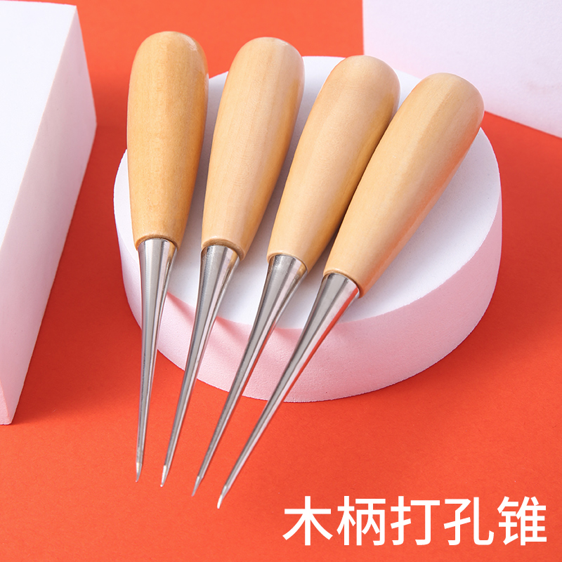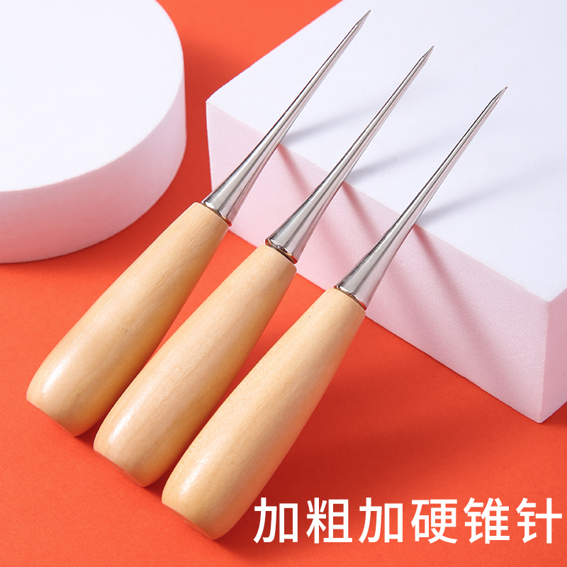 Chambering Solid Cone Son Needle Stainless Steel Large Wooden Handle Rough Old Punching Handmade Shoes DIY Leather Tool-Taobao