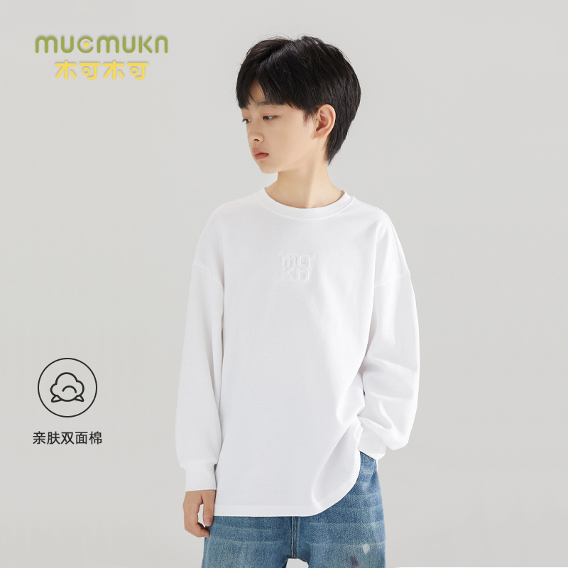 Boy round collar white T-shirt with undershirt autumn long sleeves casual loose student clothes CUHK children's inner lap blouses-Taobao