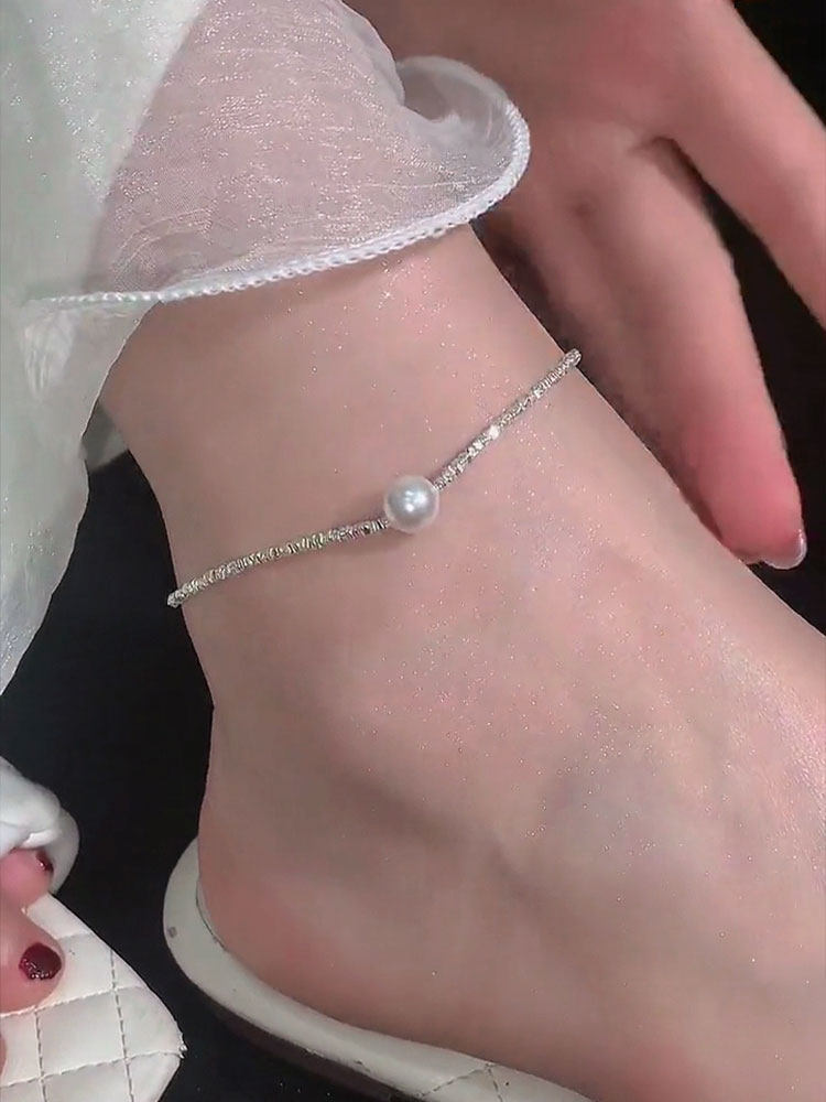 925 pure silver crushed silver pearl foot chain woman 2023 new exploits advanced feeling light and luxurious crowdsourced clear feet ring-Taobao
