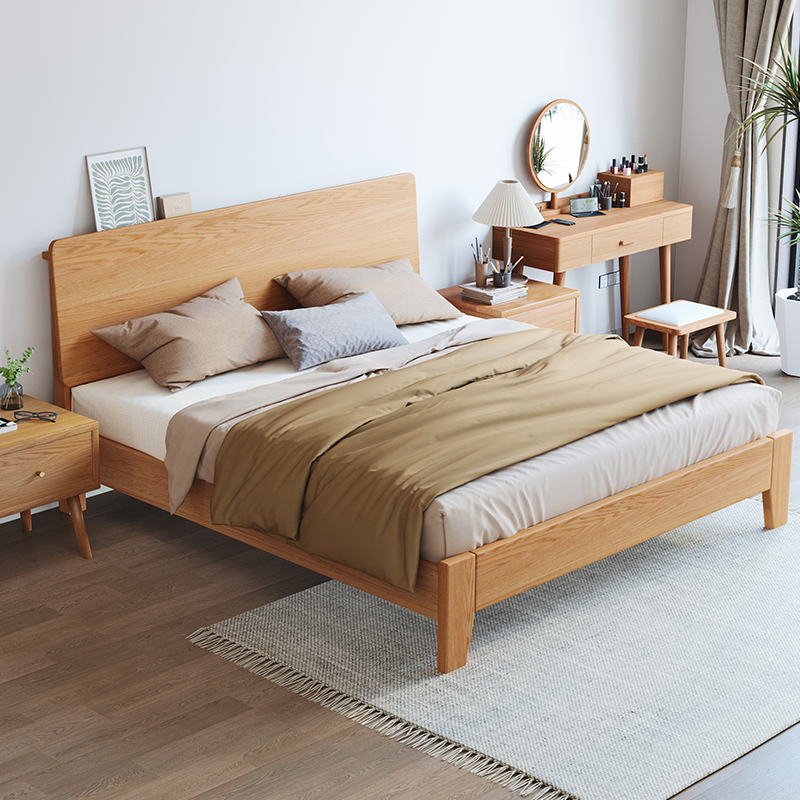 Full solid wood bed light extravagant modern minimalist 1 5 m solid wood double bed 1 m 8 master bedroom high-end atmosphere 1 2 small family type-Taobao