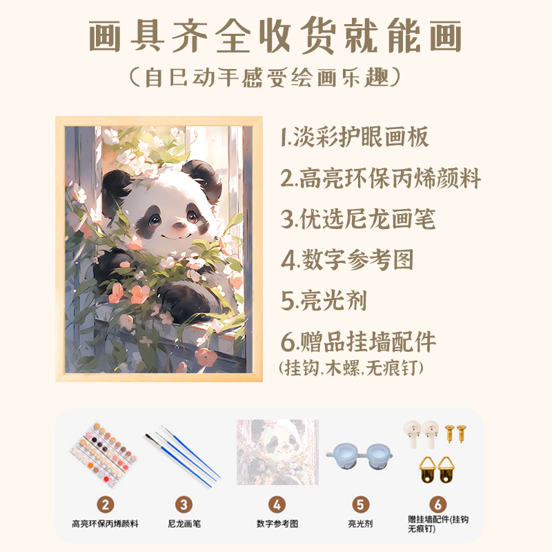 National Treasure Panda 0 Base Diy Digital Oil Painting Children Hand-painted Handmade Oil Color Painted Propylene Fill Decompression Decorative Painting-Taobao