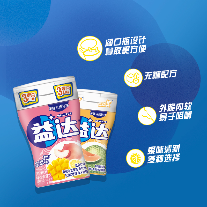 Showar Dynasty Yidda chewing gum 70 Grain Large Bottled Xylitol Mix Taste Fresh Breath with Snack Food-Taobao