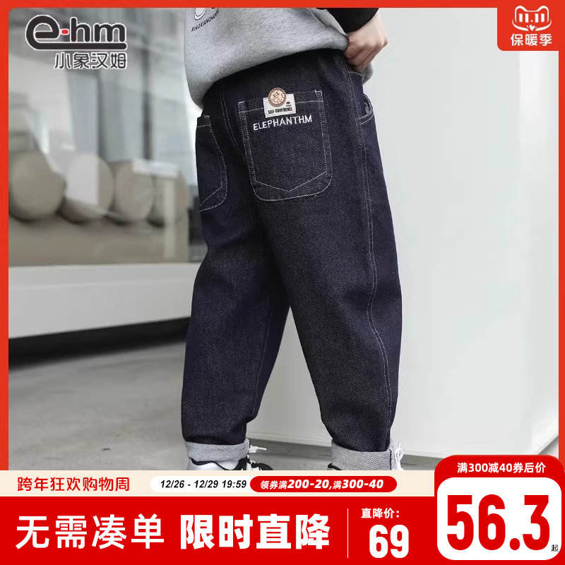 Small Elephant Ham Boy Clothing Boy Plus Suede Jeans Children Winter Pants 2023 New CUHK Tong Han Version Long Pants-Taobao