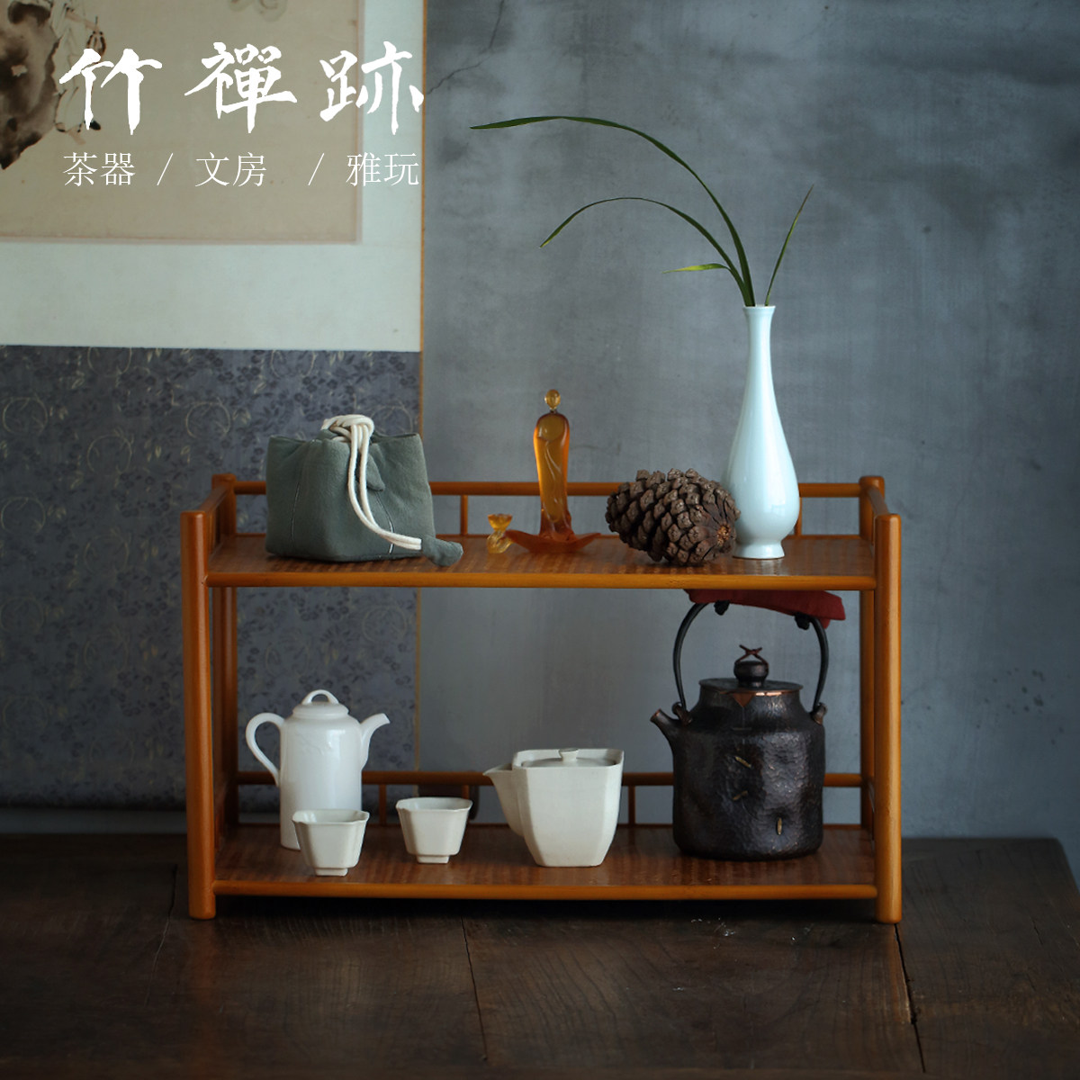 Bamboo Zen Trail) Bamboo Double Layer Tea Frame Mat Surface With Surround Table Teapot Shelving Tea Cup Shelf Tea Set With Shelf-Taobao