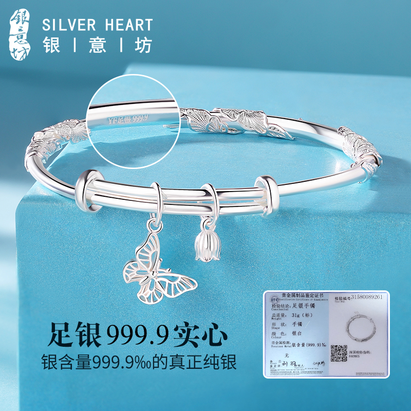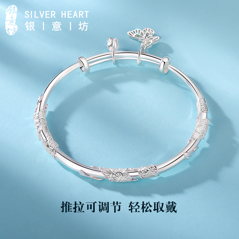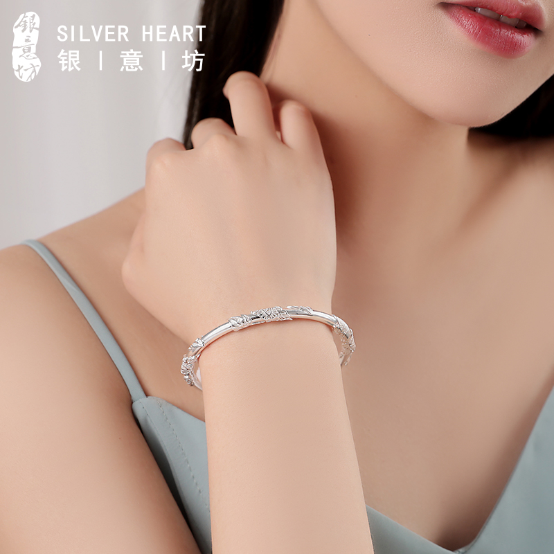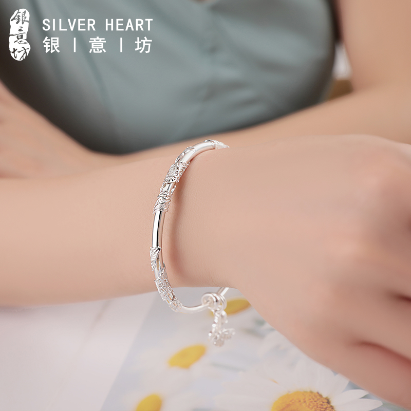 Complex flowers specie silver bracelet solid foot silver light extravagant small crowdsilver bracelet children pure silver 9999 to send girlfriend Christmas present-Taobao