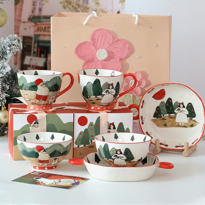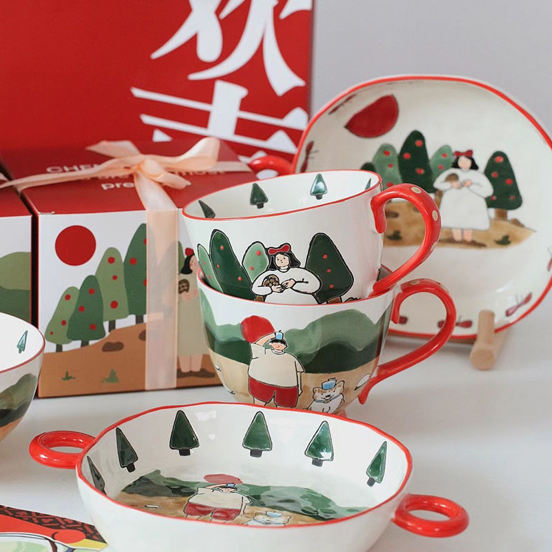 Hand painted tourist bowls Two sets (gift boxed) Handpainted tourist couple pairs of cups (gift boxes) Handpainted lovers bowls (gift box gift bags Greeting Card Silk Ribbon) Handpainted lovers to the cup (gift box gift bag)