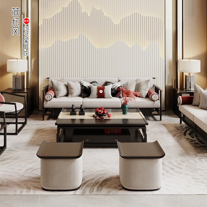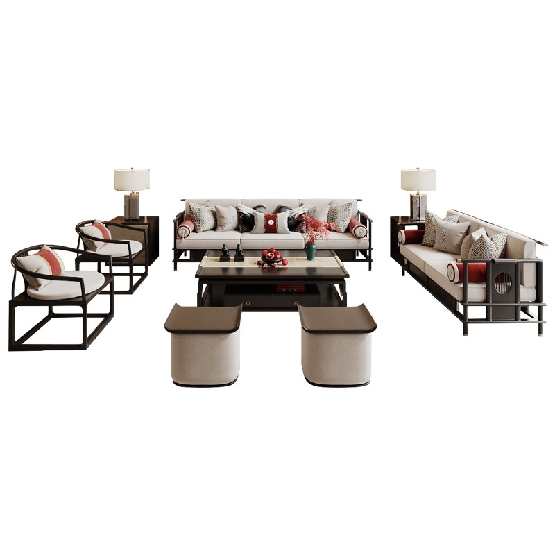 Three-person sofa double sofa single sofa coffee table TV cabinet stool side few pictures nine-piece set