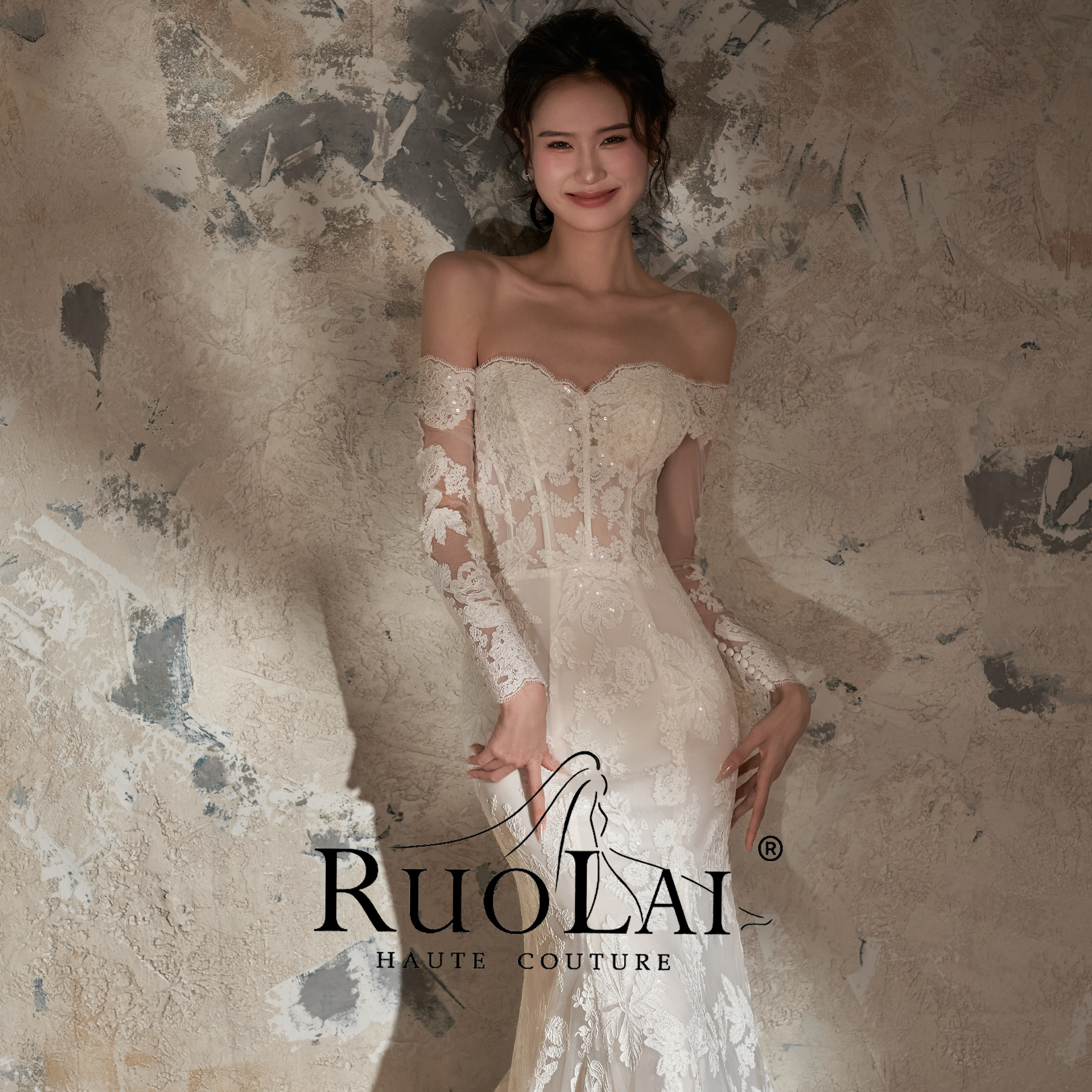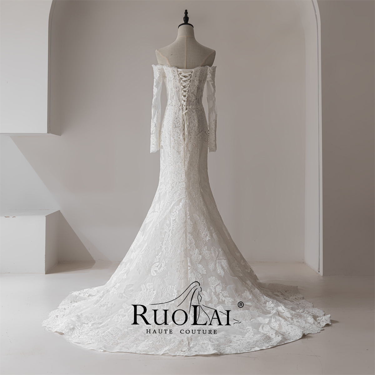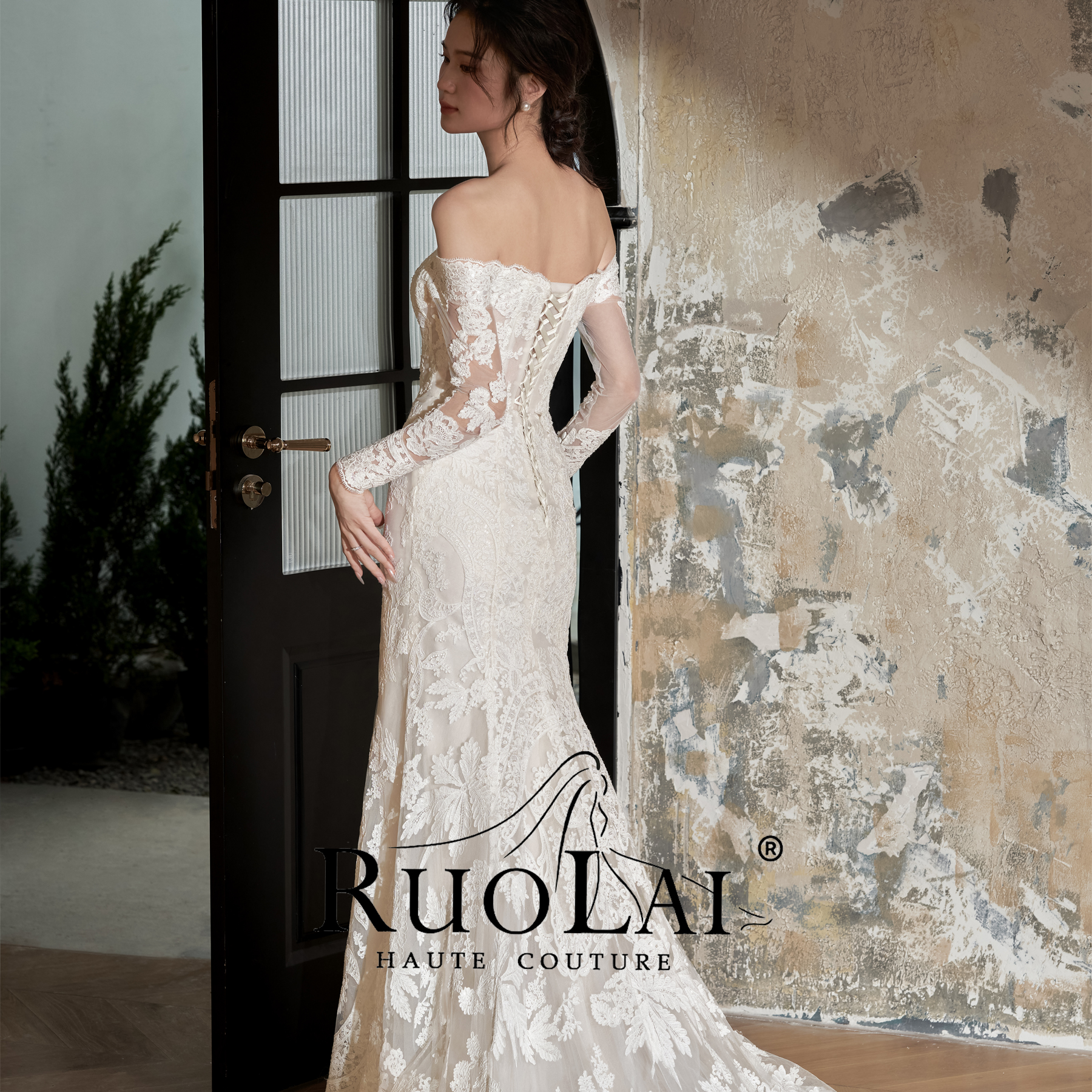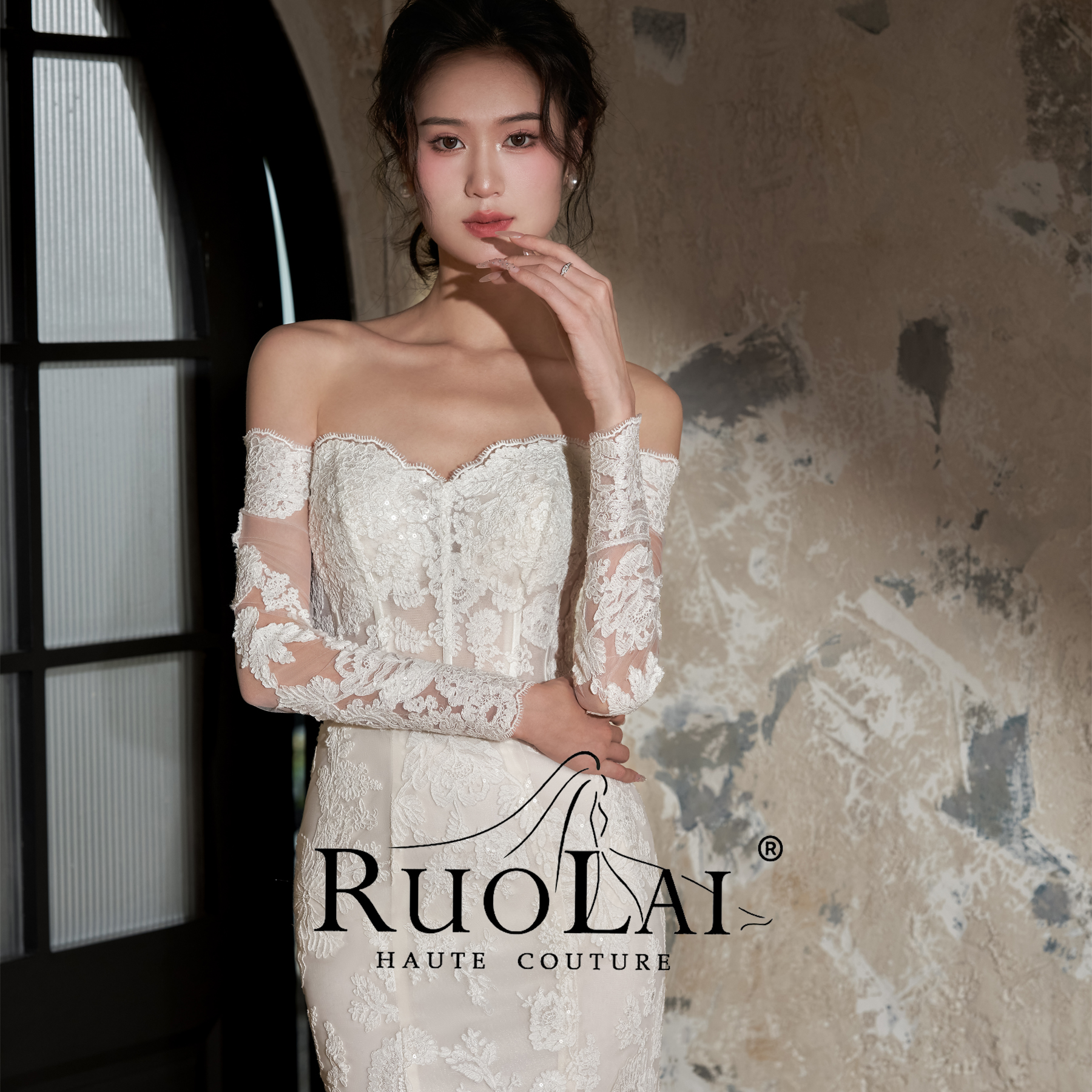 New French Lace Mermaid Light Wedding Dress for Bride Super Fairy Temperament Slim Long Sleeve Dress for Little People 2024