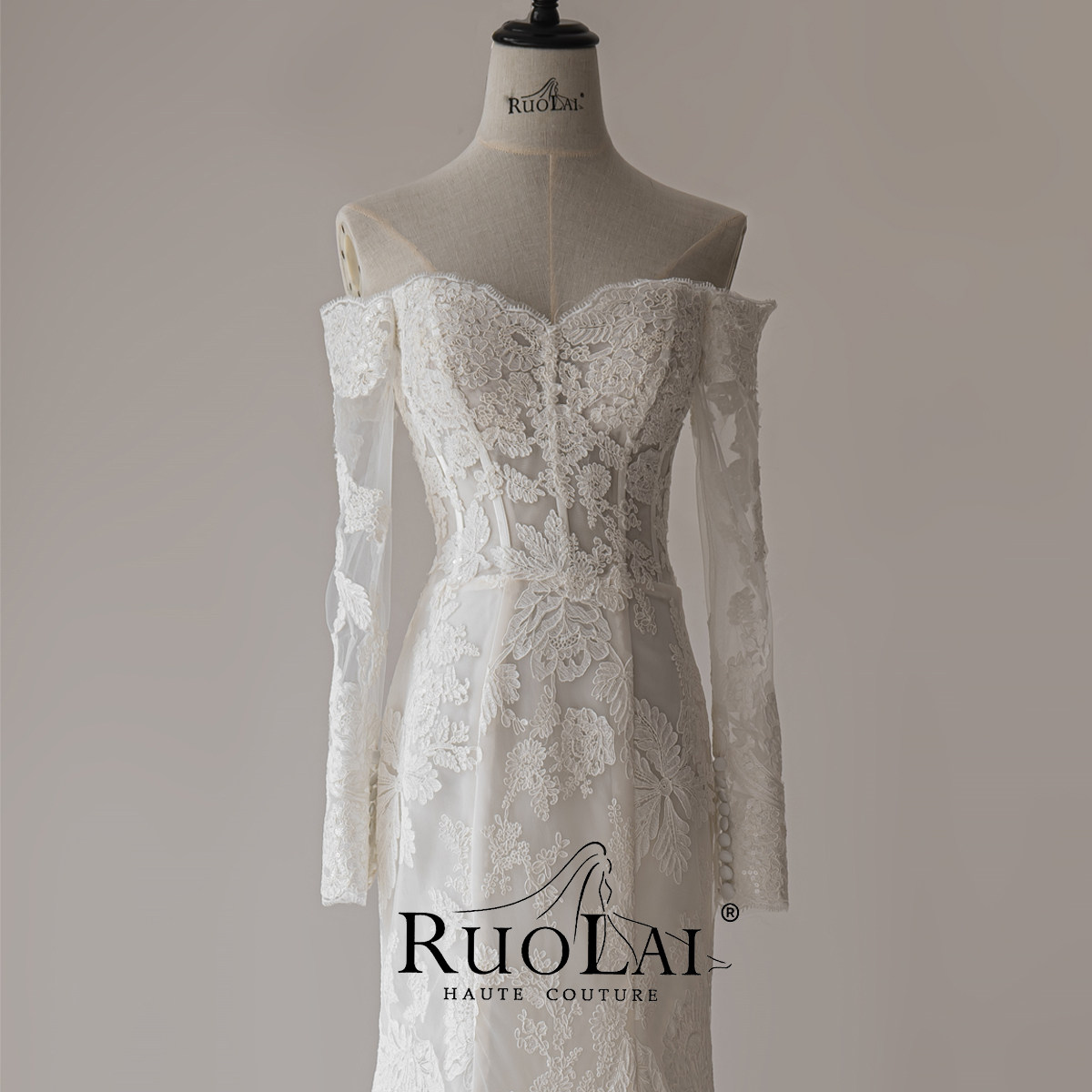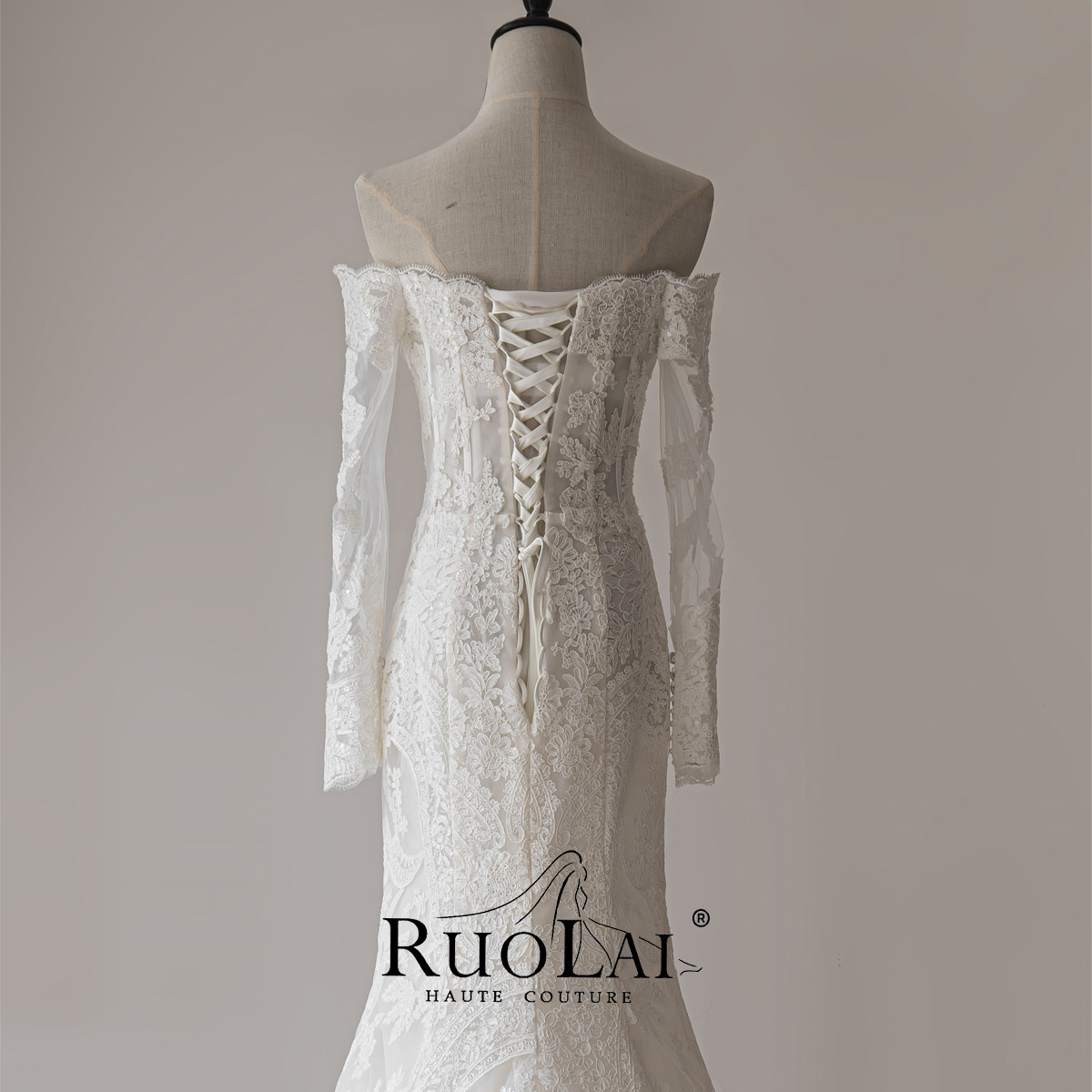 2023 new French style lace fish tail light wedding dresses superfairy temperament with long sleeves gown small sub-Taobao