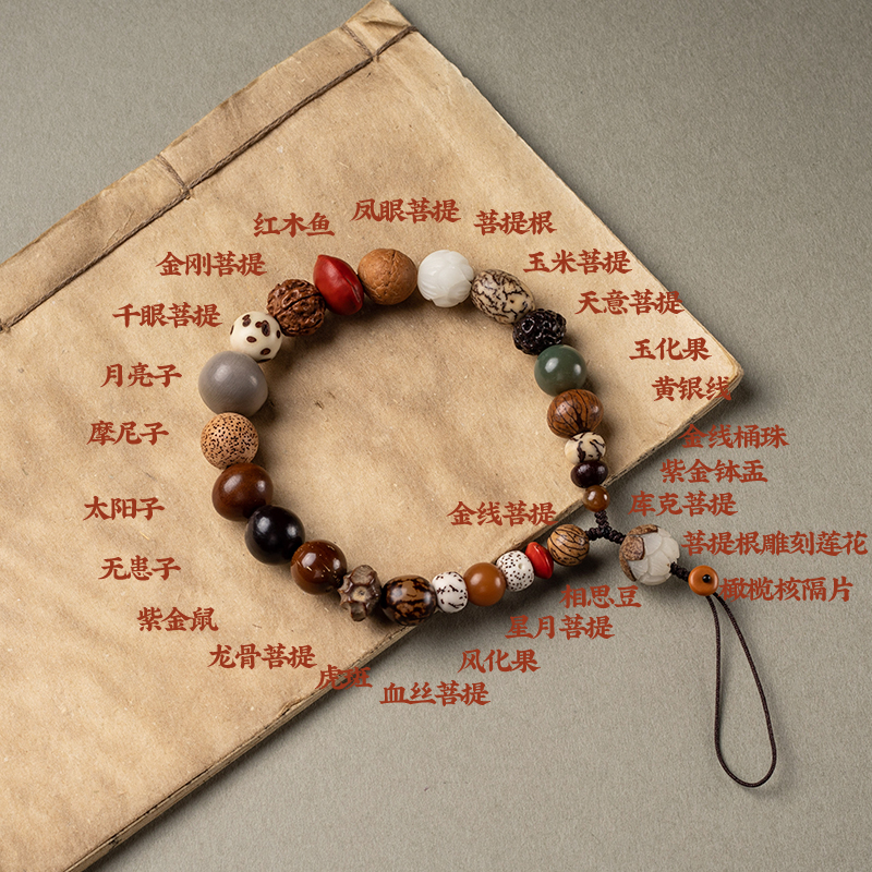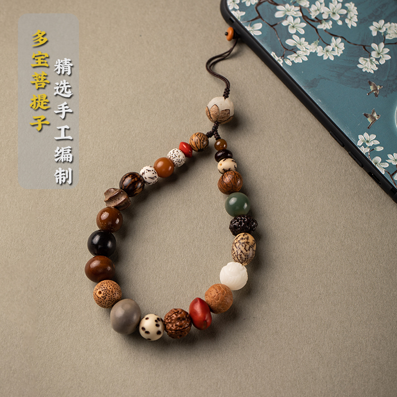 Shibazi Duobao Bodhi mobile phone chain lanyard hanging buckle Chinese style short key chain Bodhi pendant mobile phone