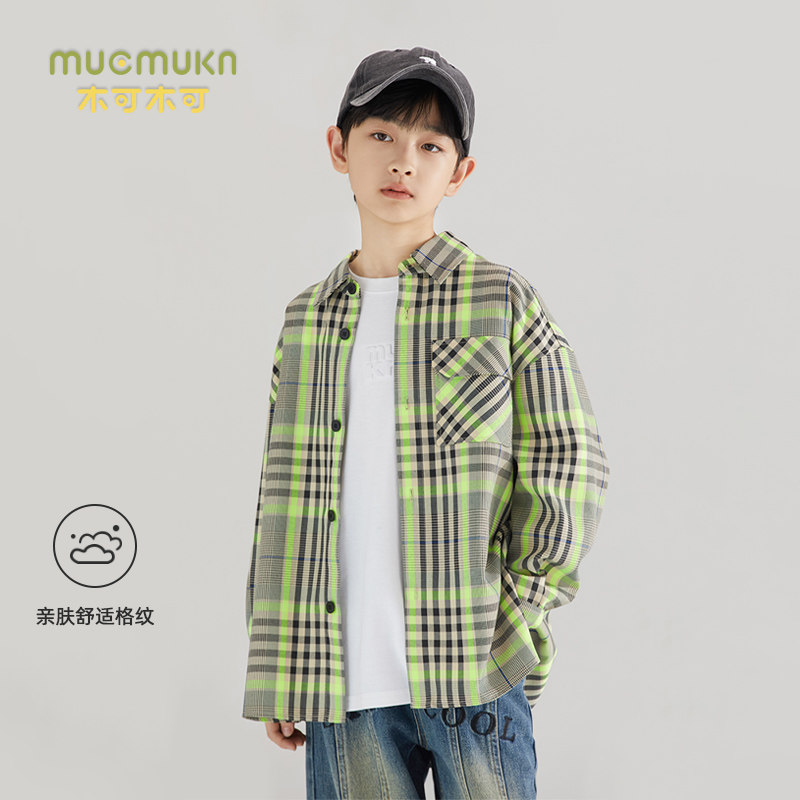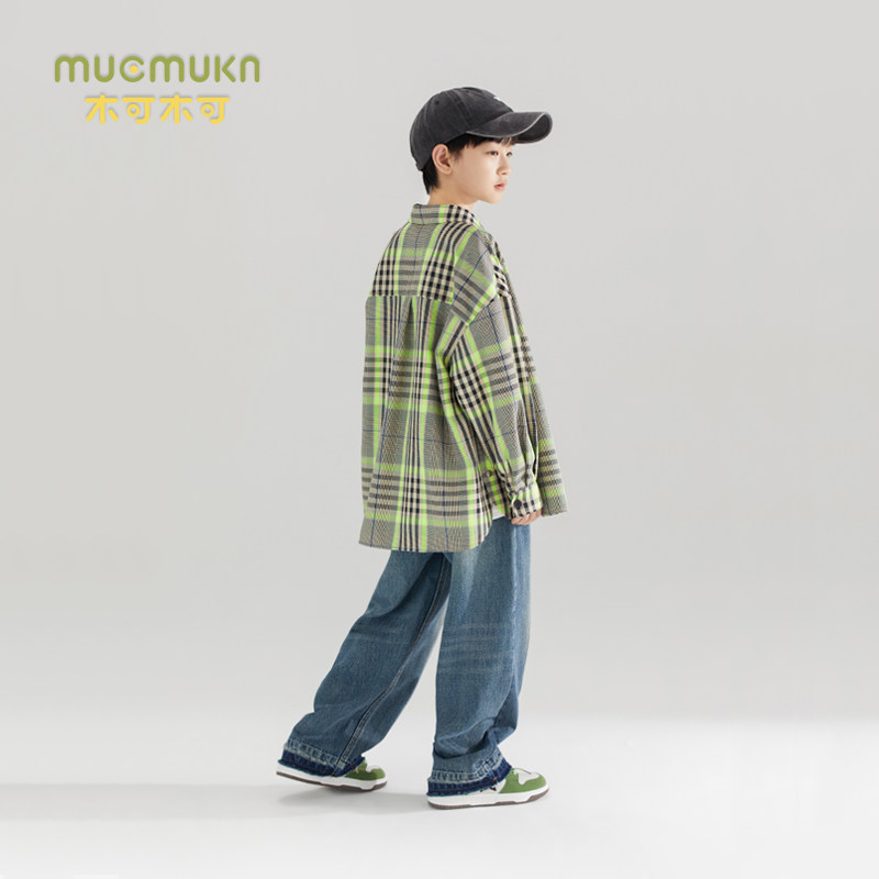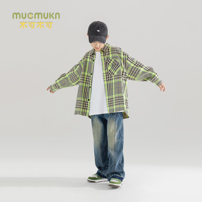 American Retro Green Gge Shirt Jacket Autumn College Wind Casual Loose Boy Long Sleeve Shirt Large Child Tide-Taobao