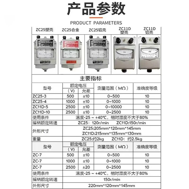 German import aumeter 500v electrician rocking table 1000v2500v hand shaking insulation resistance detector aluminum shell ZC-Taobao